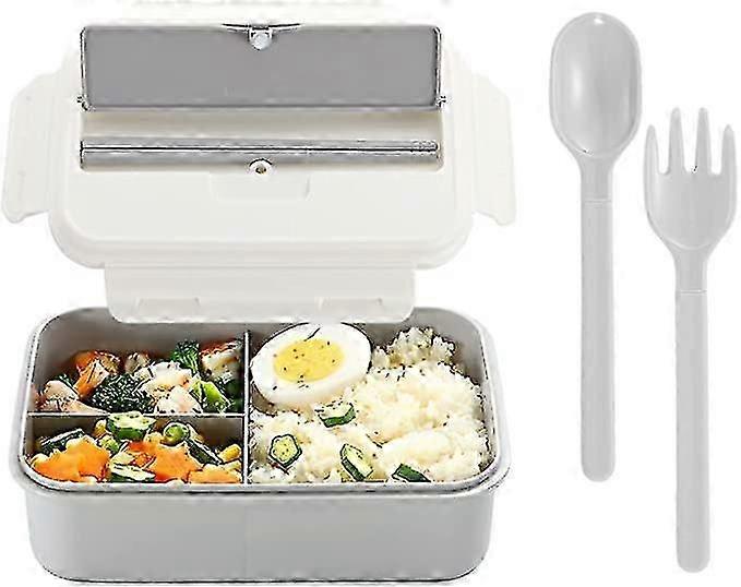 25-26 Lunch Box, Bento Box For Kids Adults, Food Container With 3 Cutlery Set Compartments Lunchbox , Bpa Free ( Blue-yellow)