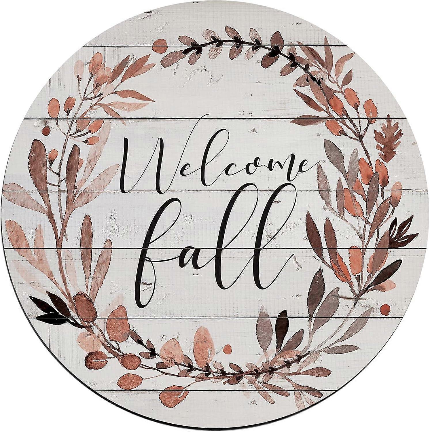 Hello Fall Sign Welcome Sign for Front Door Decor Farmhouse Porch Decoration Round PCV Made Hanging Sign for Home Beach Restaurant Shop
