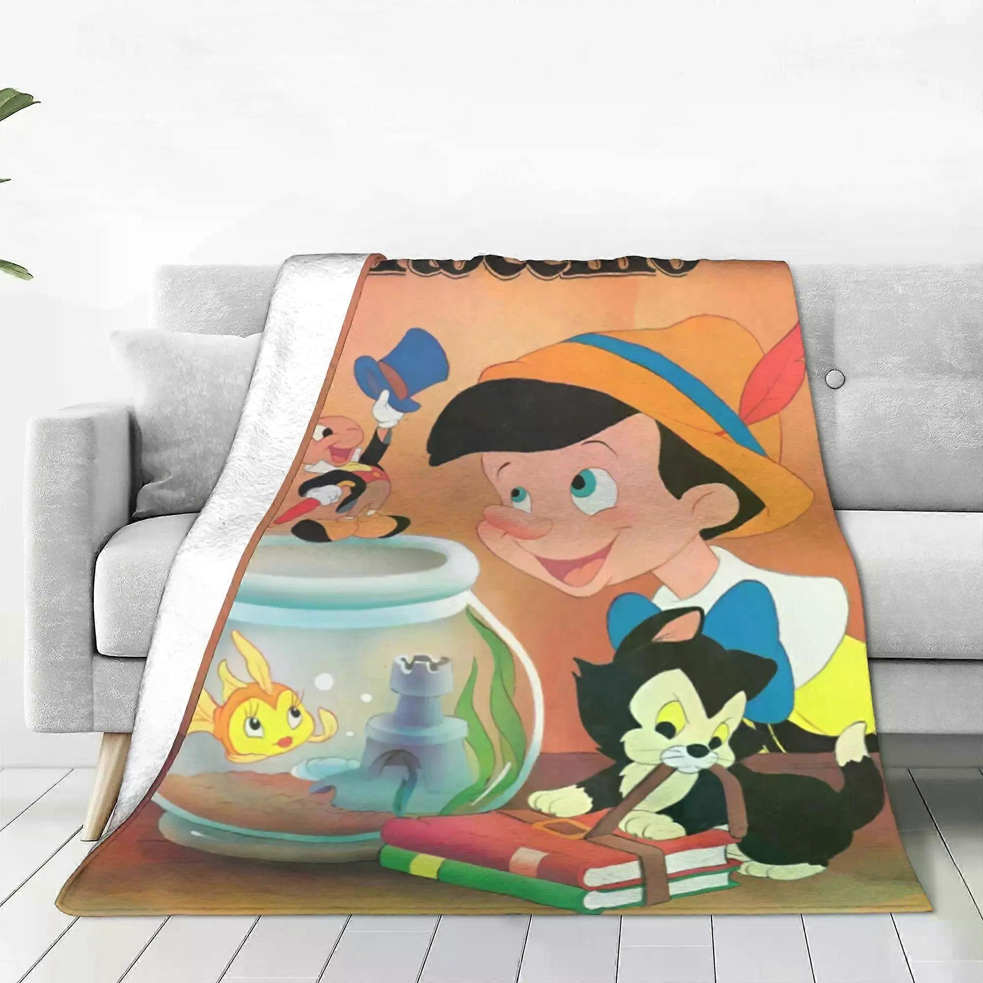 ss744 Pinocchio Adventures Puppet Blankets Cartoon Flannel Throw Blanket Bed Sofa Portable Ultra-Soft Warm Multi-function Quilt