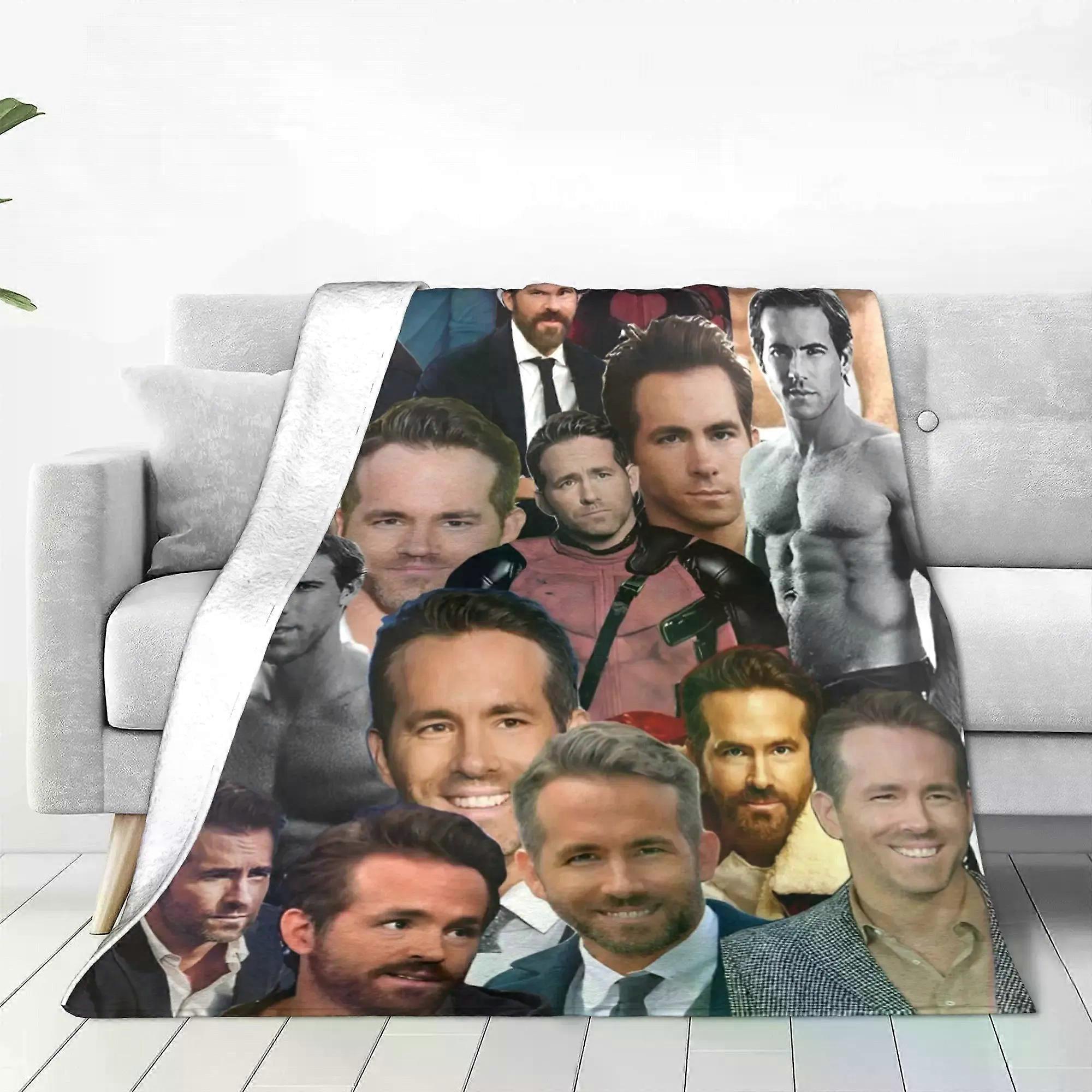 ss784 Ryan Reynolds Collage Actor Blanket Photo for Fans Funny Fuzzy Funny Soft Throw Blanket for Bed Sofa Textile Decor Couch