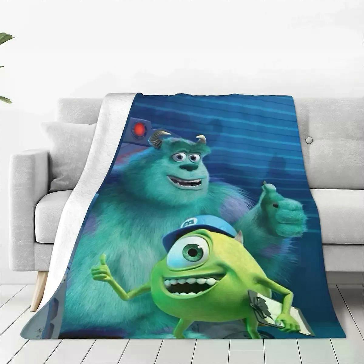 ss903 Monsters, Inc Cartoon Knitted Blanket Fleece Mike Wazowski James Sullivan Lightweight Thin Throw Blankets Bedroom Sofa Bed Rug