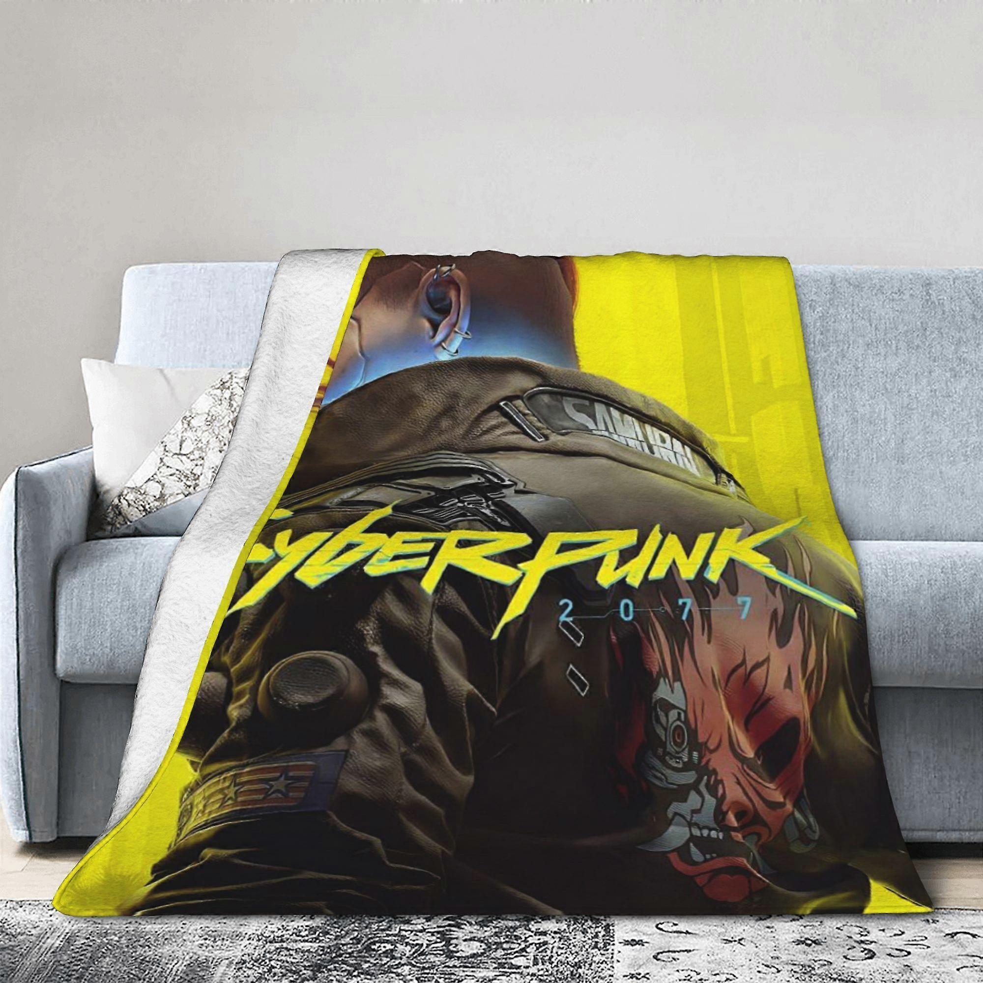 sf076 Cyberpunk 2077 Game Poster Fleece Blanket - Soft, Comfortable Flannel Throw for Napping, Travel, Office, Camping, Winter, Christmas Essential, M