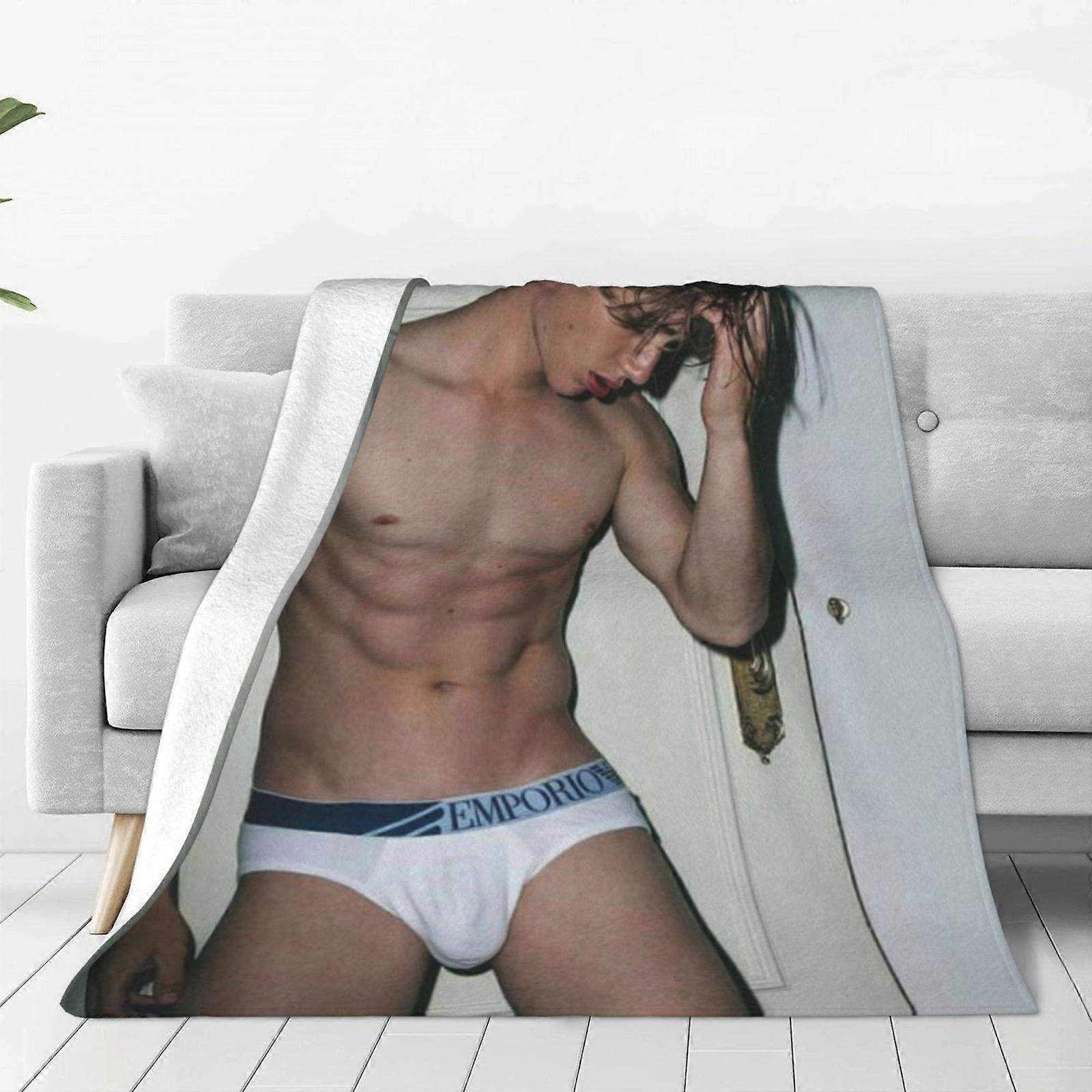 sf103 Muscular Handsome Guy Printed Flannel Blanket - Suitable for Living Room, Office, Sofa Decoration, Travel - Cartoon Design All-Season Gif