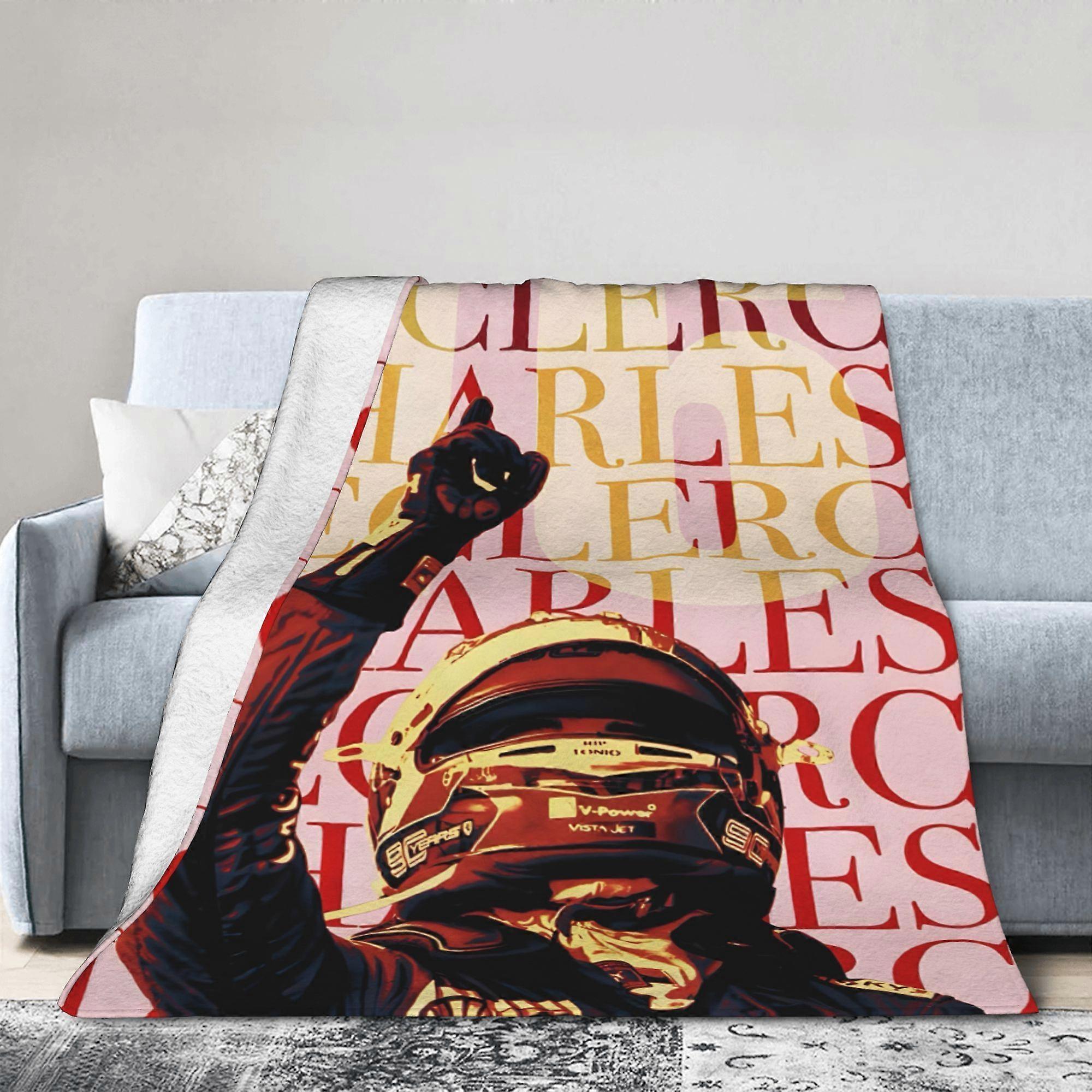 sf295 Sanrio Inspired Charles Leclerc Ultra-Soft Blanket - Vibrant Racing Design with "CLERICO" & "ARLES" Text, Perfect for Sofa, Bed, or Office - Ide