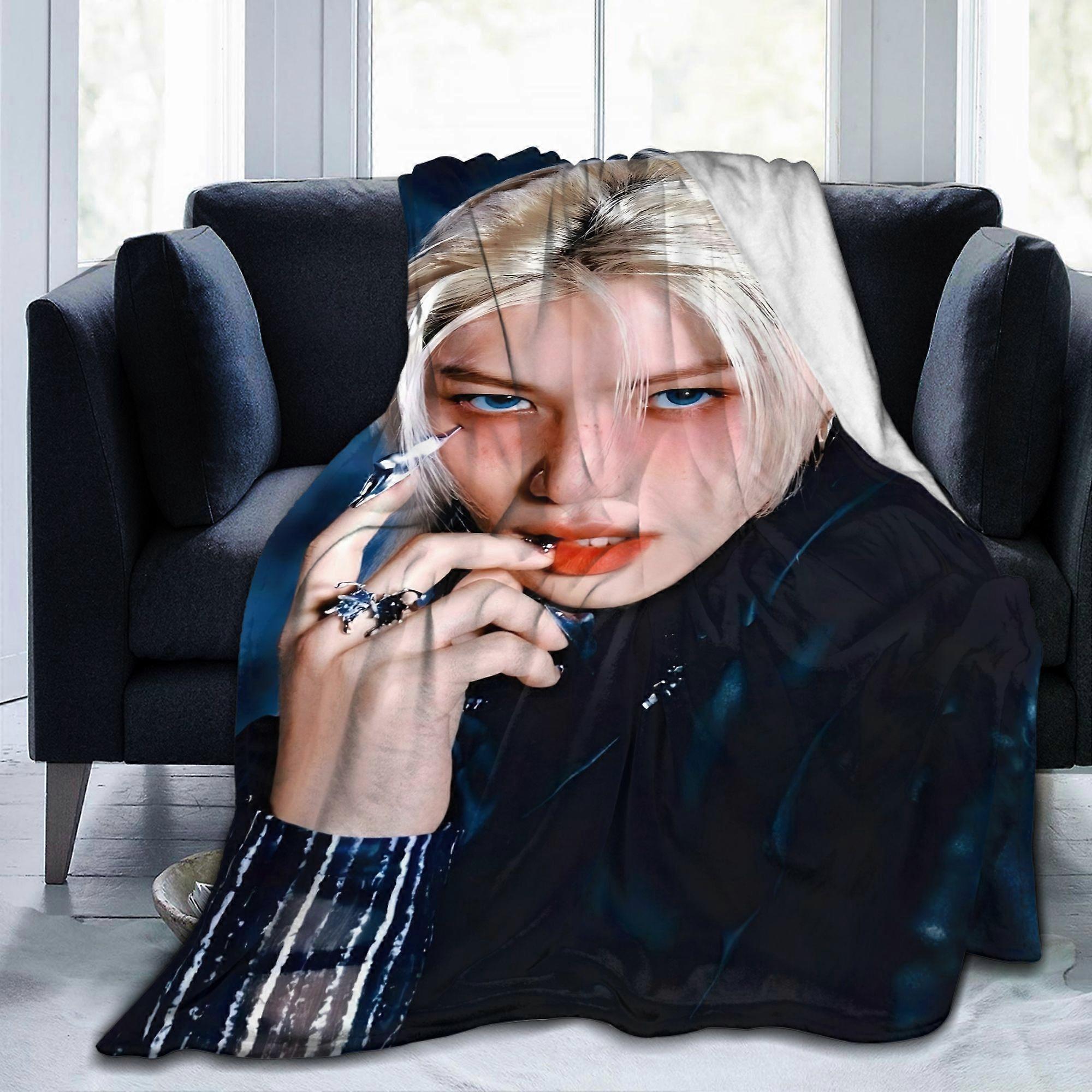 sf357 Lee Felix Anime-Themed Flannel Blanket - Soft Polyester, All-Season Comfort for Sofa & Office, Perfect Gift for Anime Fans, Allseason Comfort|An