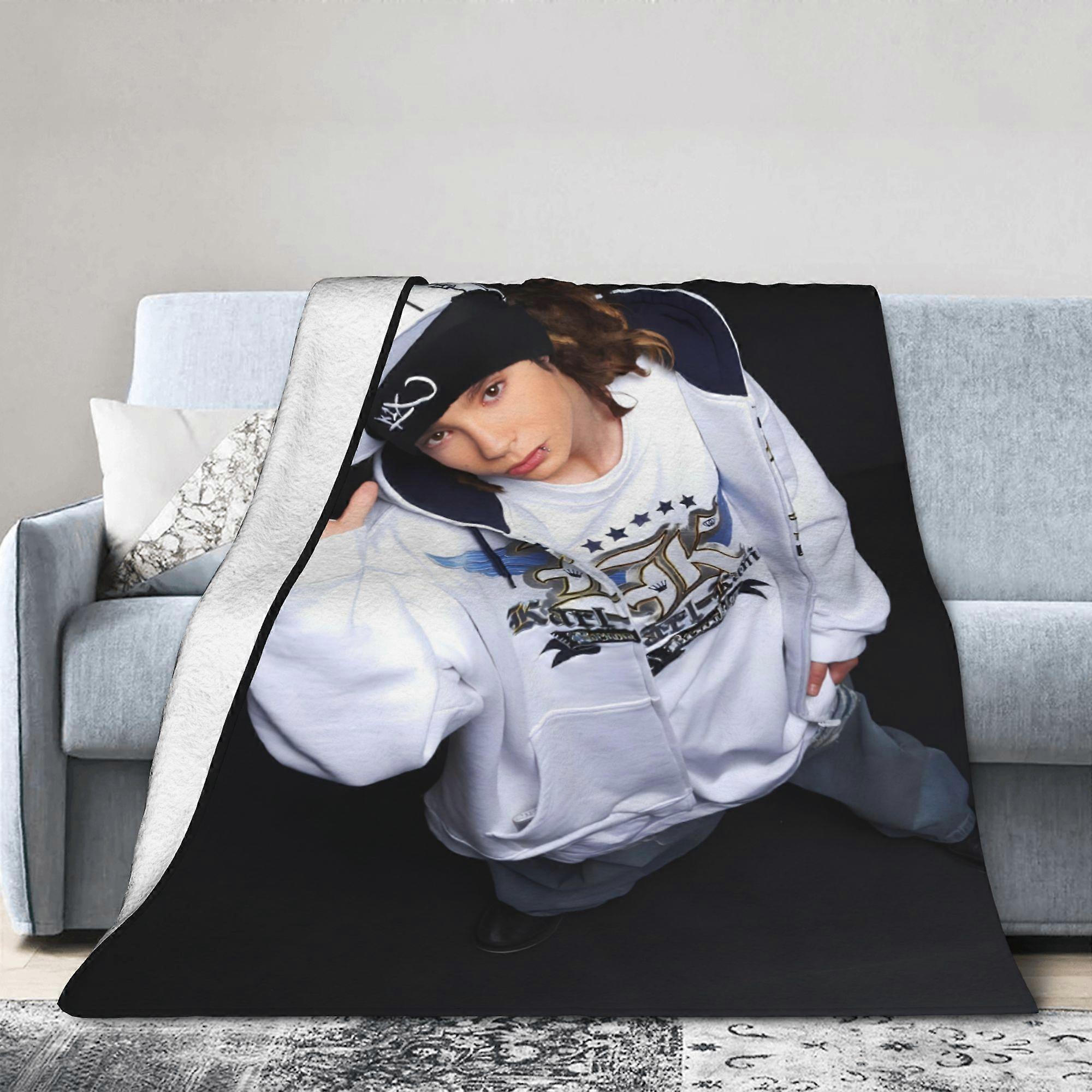 sf665 Tom Kaulitz Inspired Ultra-Soft Flannel Throw Blanket - Black & White Anime Design, Cozy All-Season Comfort for Living Room, Office, or Sofa Dec