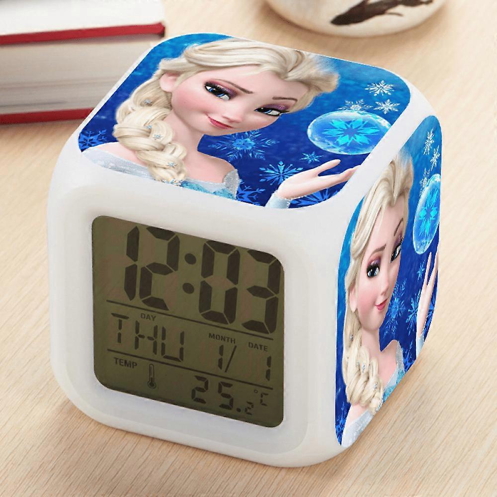 HANNTAOO Digital Alarm Clock for Kids, Frozen Pattern, 7 Color LED, Thermometer, Night Light, Gift for Boys Girls HTNL#1141