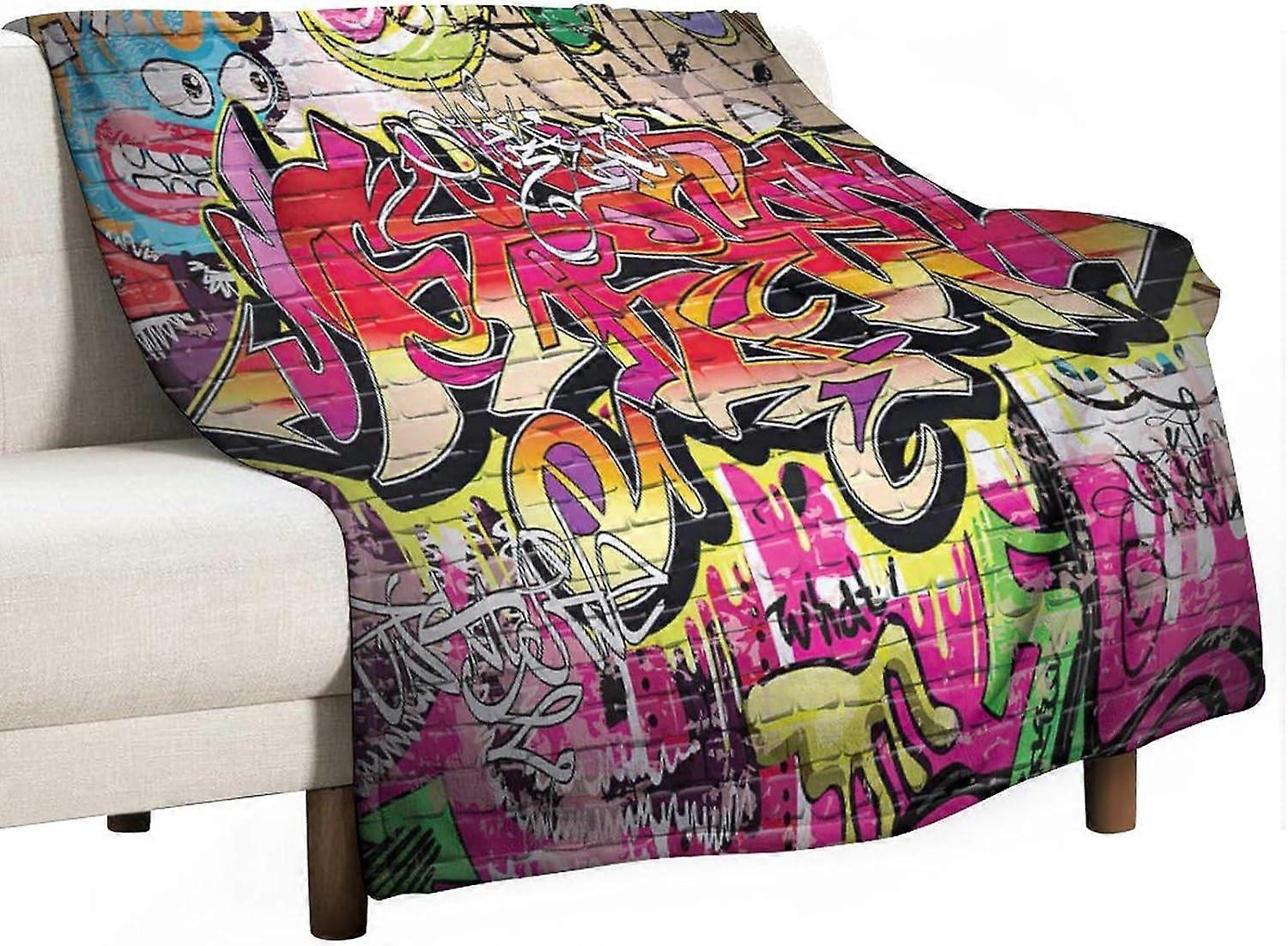 Graffiti Blanket, Colorful Hip Hop Hippie Doodle Urban Print Super Soft Flannel Throw Blanket for Bed Sofa (330GSM Flannel) 30"x50"in