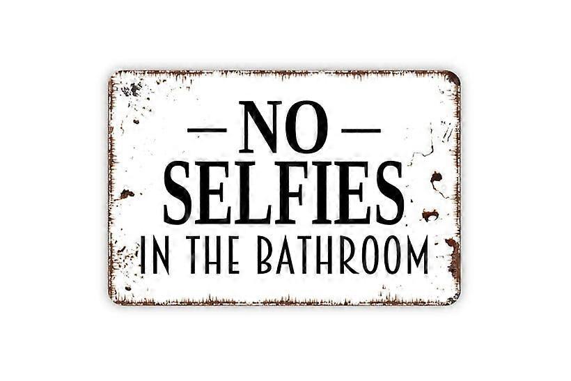 No Selfies In The Bathroom Sign Funny Bathroom Farmhouse Metal Sign Contemporary Modern Wall Tin Metal Sign Size: 8 x 12 Inch