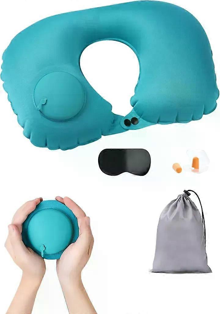Blue inflatable neck pillow, ultralight 80g, automatically inflatable,