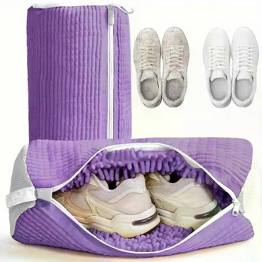 Set of 2 premium shoe washing bags, purple, tear-resistant, with zipper, for all