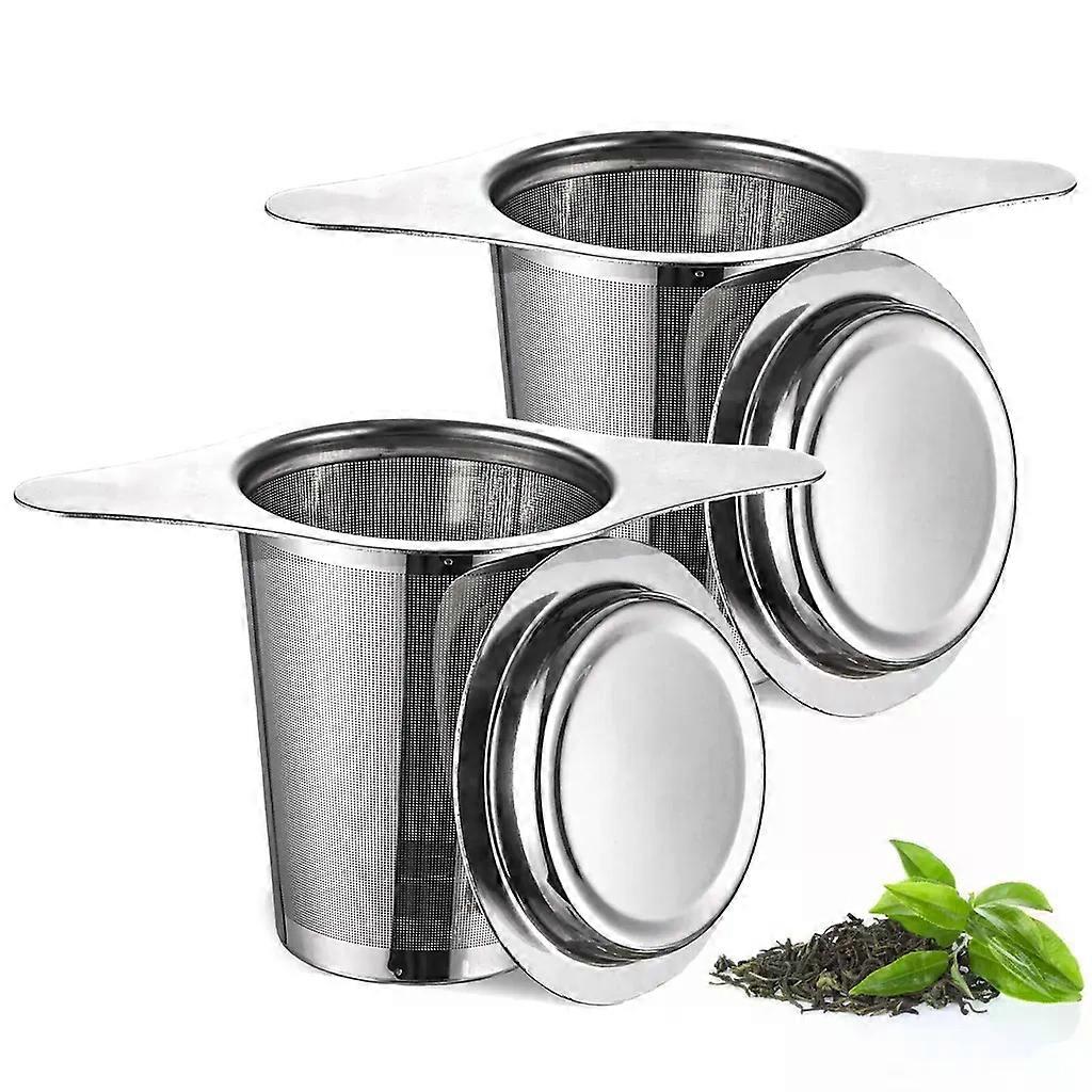 Pack of 2 premium tea strainers with lid and double handle, tea strainer for