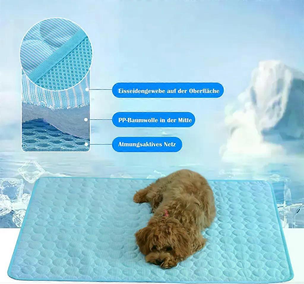 Cooling surface: The ice silk fabric of the pet cooling mat provides instant and long-lasting cooling for your pet. Comfortable padding: The BB cotton of the cooling mat for dogs provides additional comfort and a soft lying surface. Breathable: The mesh fabric of the pet cooling bed prevents heat buildup and ensures good ventilation. Versatile sizes: Six different sizes offer the right mat for every pet size. Product parameters: Material: Ice silk fabric (surface), BB cotton (filling), breathable mesh fabric Colors: Dark blue Sizes: 30 x 40 cm / 60g (for pets up to 1 kg) 40 x 50 cm / 100g (for pets up to 4 kg) 50 x 60 cm / 145g (for pets up to 7.5 kg) 55 x 70 cm / 190g (for pets up to 15 kg) 70 x 100 cm / 345g (for pets up to 30 kg) 100 x 150 cm / 650g (for pets up to 50 kg) Features: Safe and non-toxic, non-slip bottom, durable and wear-resistant Package contents: 1 x pet cooling mat in the selected size Usage scenarios: The pet cooling mat is ideal for indoor and outdoor use, whether at home, in the car or in the garden. Perfect for hot summer days, it ensures your pet always has a cool and comfortable place to rest. Instructions: Place the cooling mat on a flat surface where your pet likes to rest. When not in use, store it in a cool, dry place. Notes: Do not leave the mat in direct sunlight to avoid material damage. The mat is not suitable for chewing; keep it away from pets that like to chew.