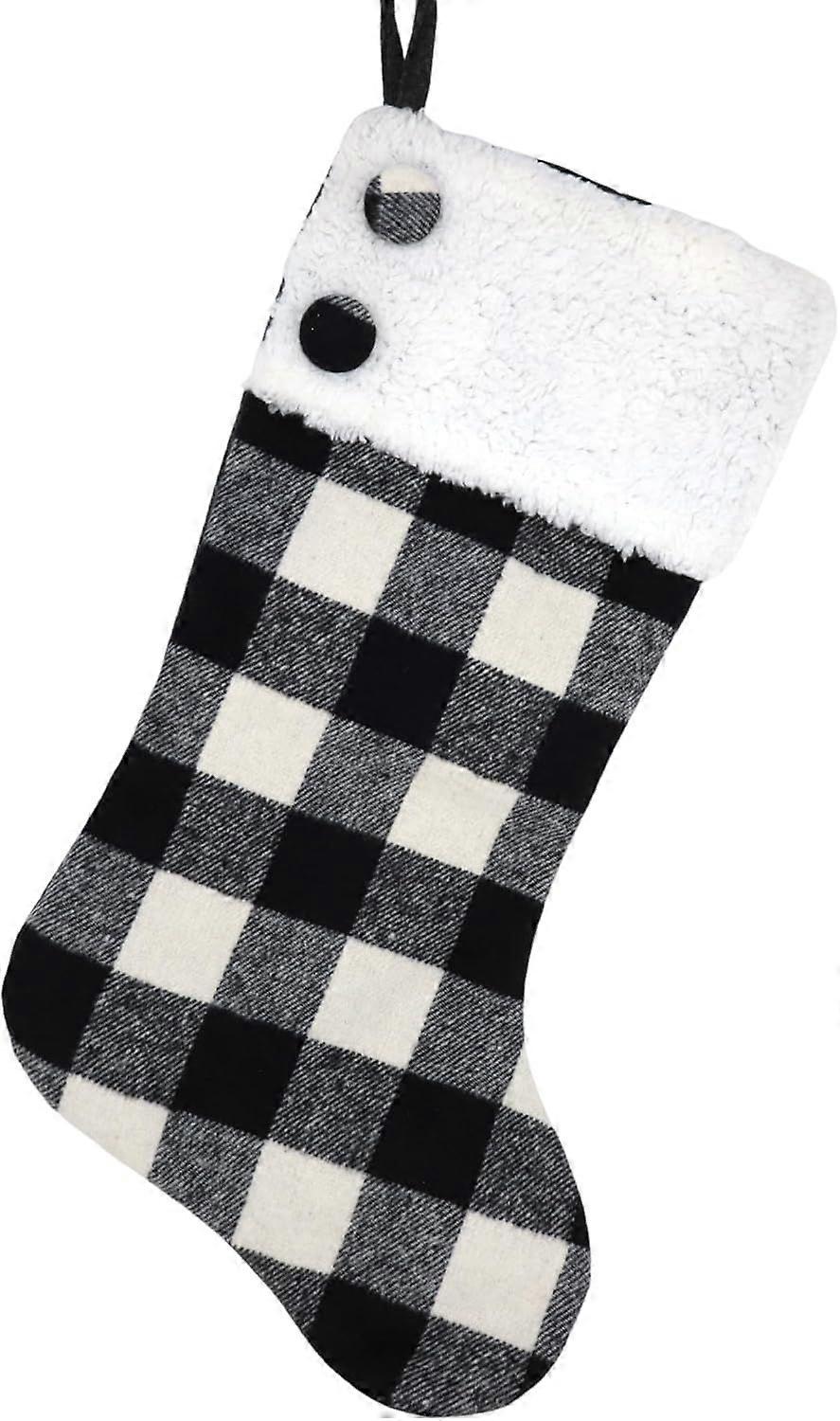 EternaNest Black and White Buffalo Plaid Christmas Stocking, Checkered Plush