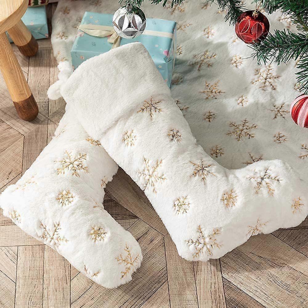 UrbanMingle 2 Pack Snowy White Christmas Stockings with Faux Fur, Plush 22 inches Xmas Sto
