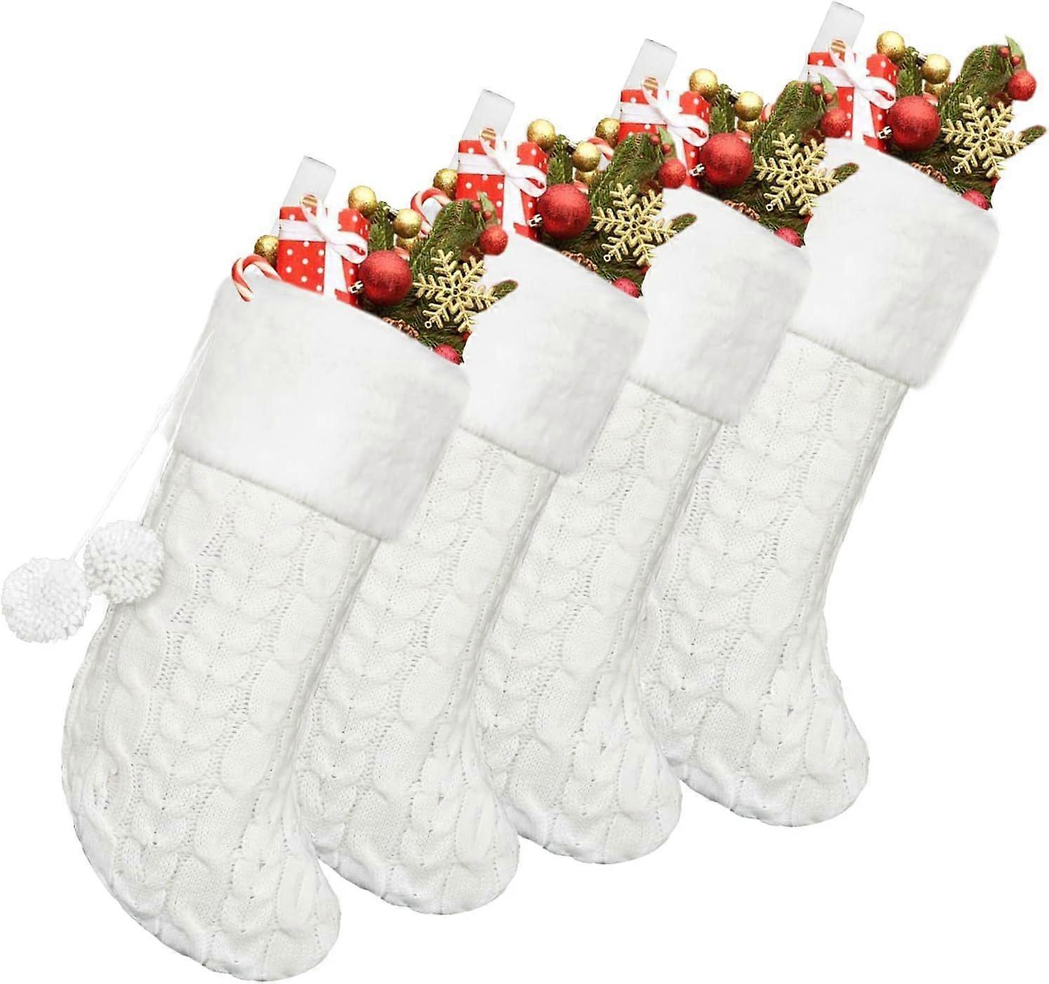 UrbanMingle Cable Knit Christmas Stockings- 4 Pack 21 Inch Knitted Xmas Stockings with Plu