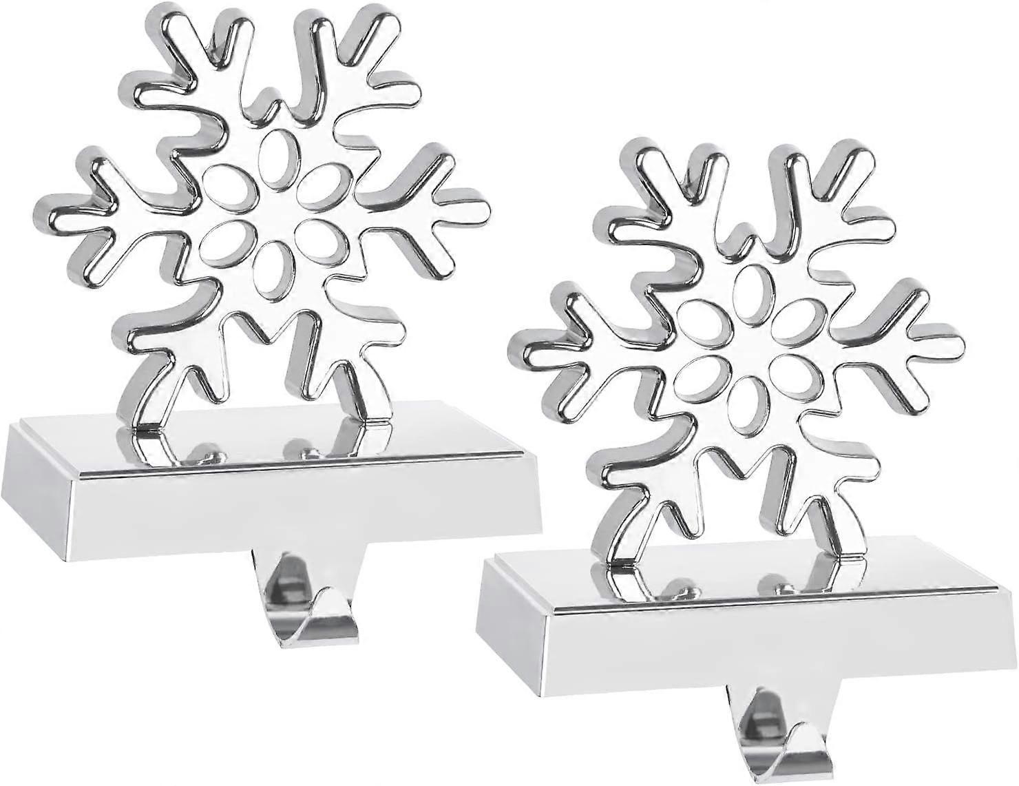 UrbanMingle 2 Pack 3D Snowflake Christmas Stocking Holders Silver Metal Mantel