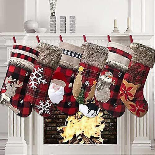 UrbanMingle Christmas Stockings Set of 6 Buffalo Red Plaid with Soft Faux Fur for Family F