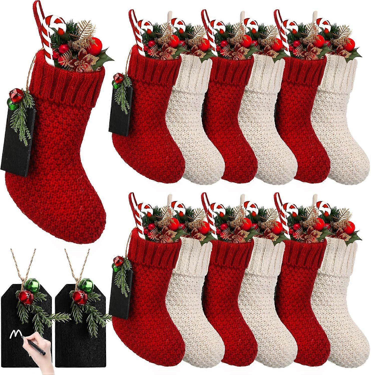 UrbanMingle 12 Pieces Christmas Mini Stockings Knitted Xmas Stocking Rustic with