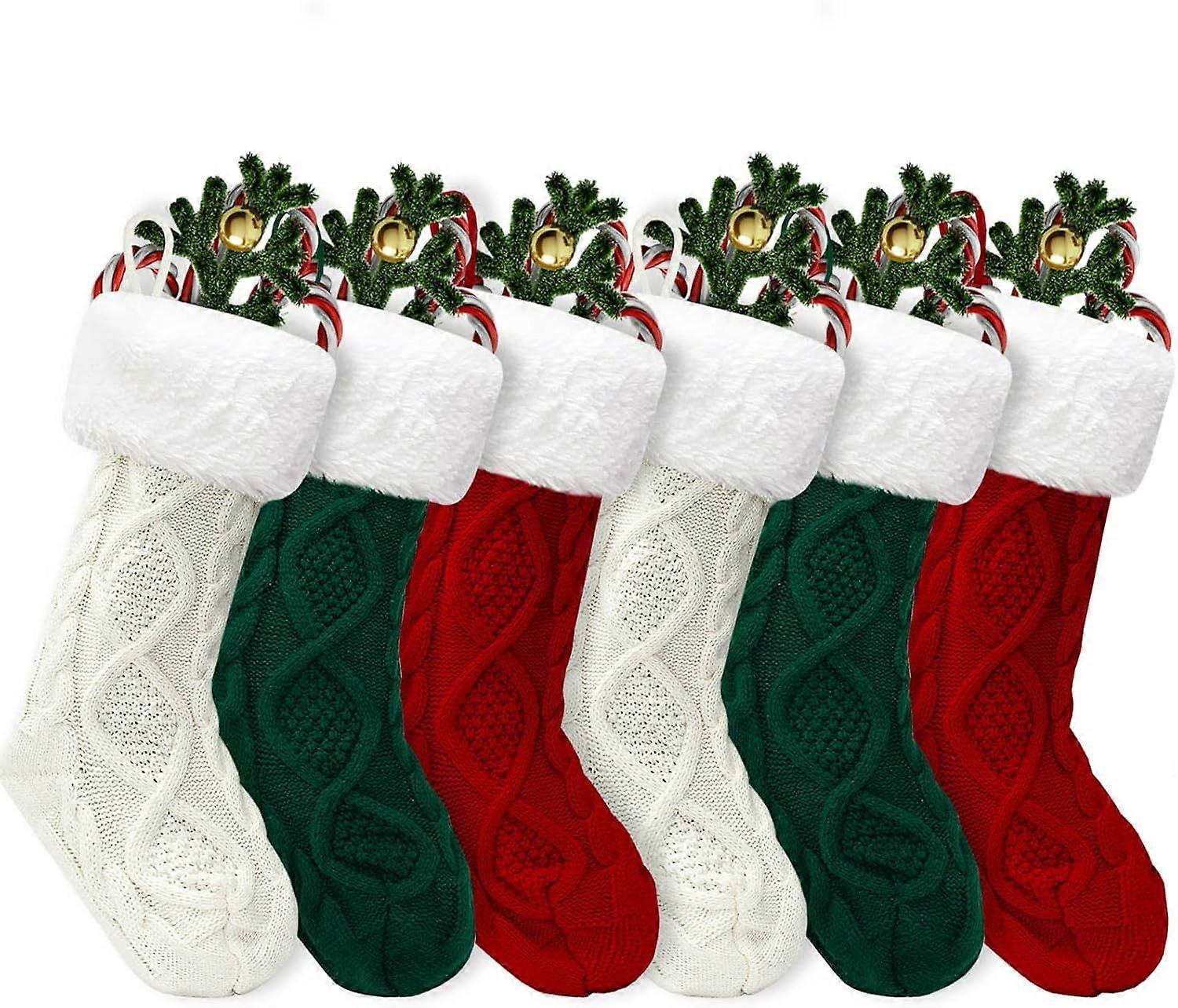 UrbanMingle 6PCS Christmas Stockings, 20 Inches Large Knit Stocking Faux Fur