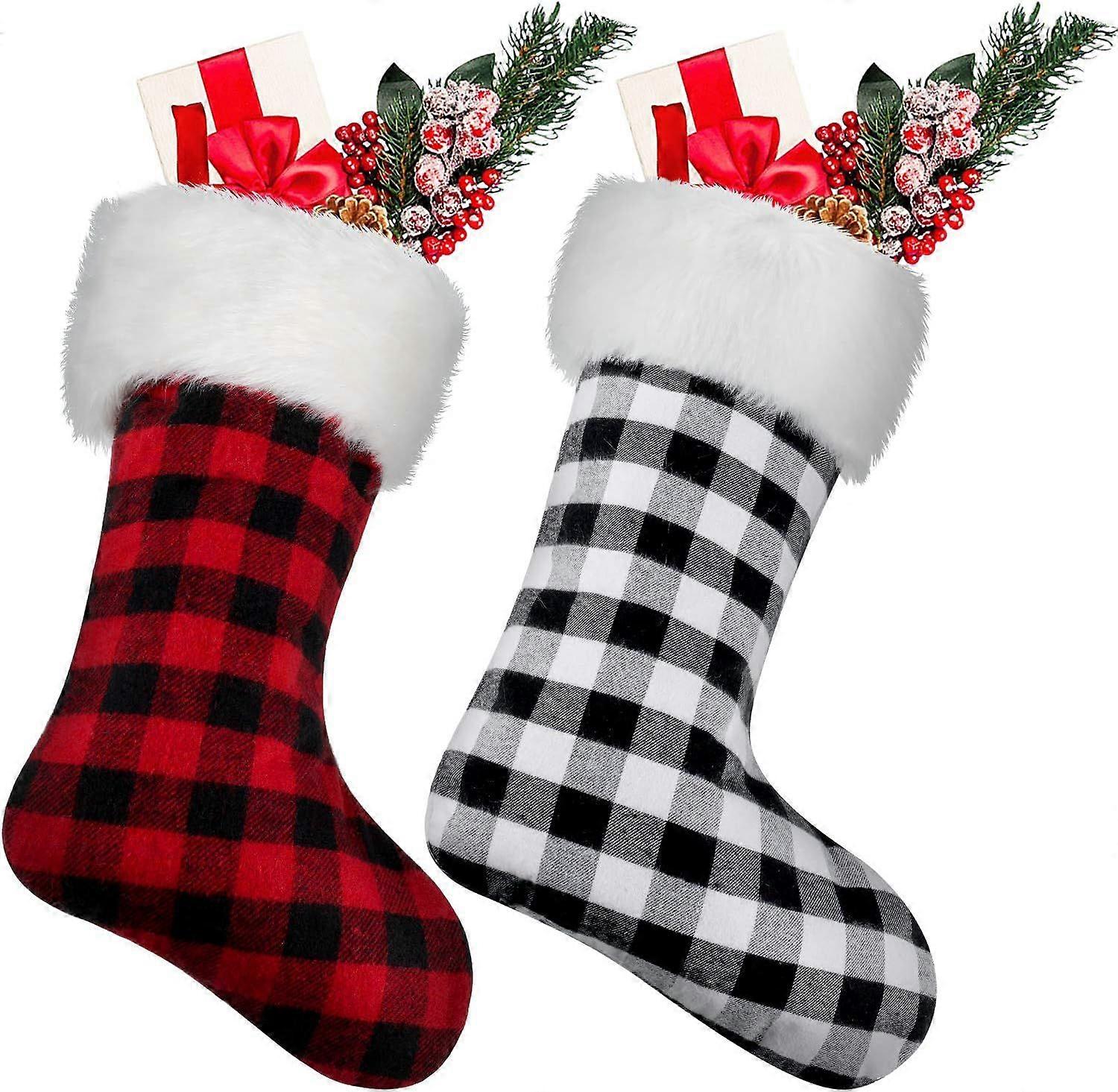 UrbanMingle 2 Pcs 20 Inch Christmas Stocking Fireplace Hanging Cozy Fur Plaid