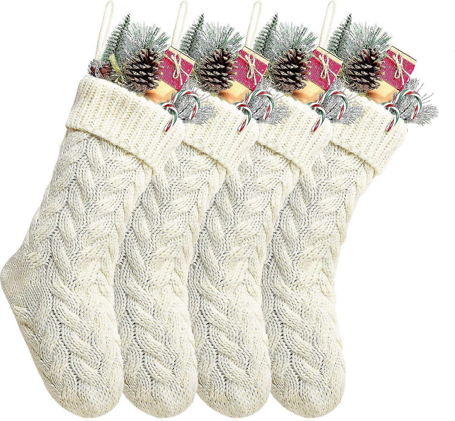 UrbanMingle Pack 4,18" Unique Ivory White Knit Christmas Stockings Style3 Ivory