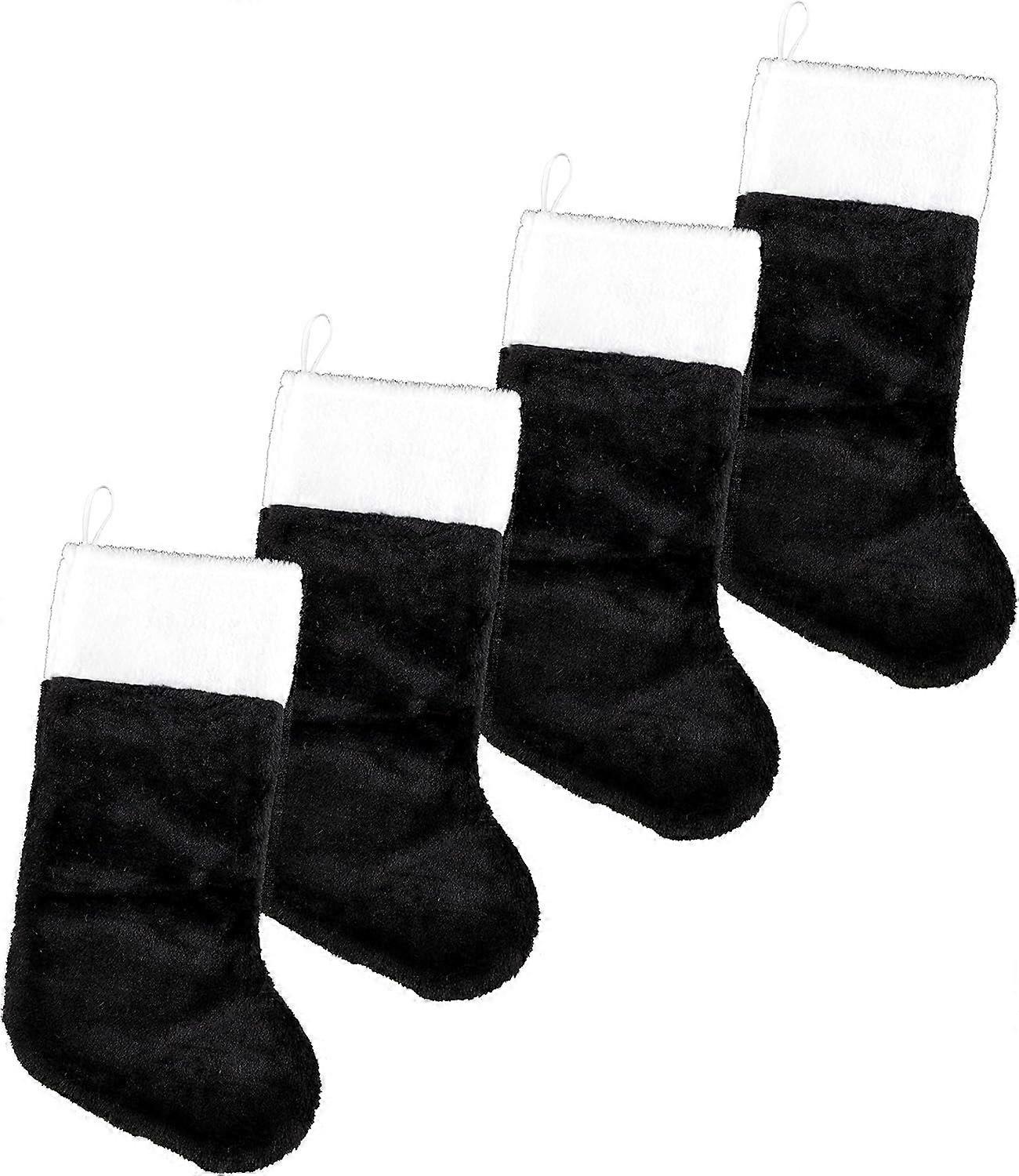 UrbanMingle 18-Inch Plush Fabric Christmas Stocking, 4-Pack (Black) Black