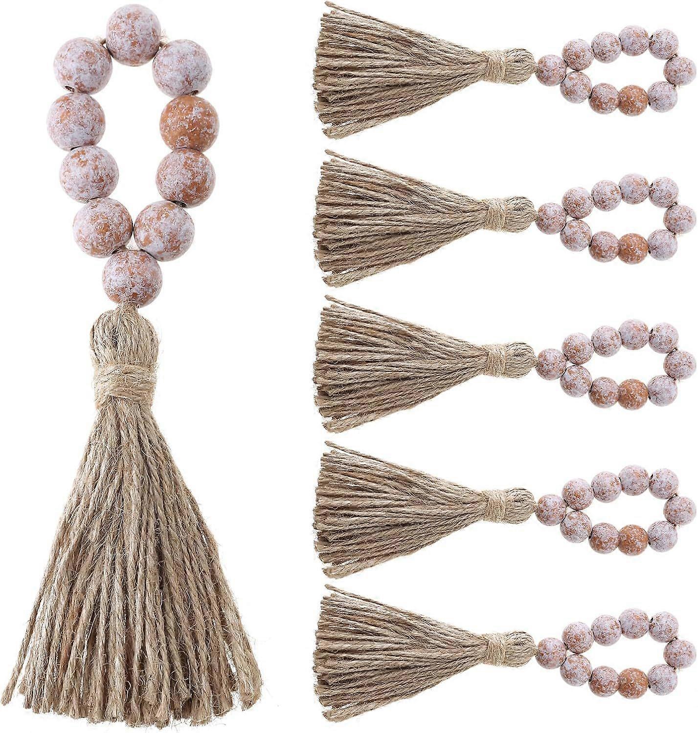 EternaNest 6-Pack Rope Tassels with 10 Wood Beads Rope Burlap Tassels for