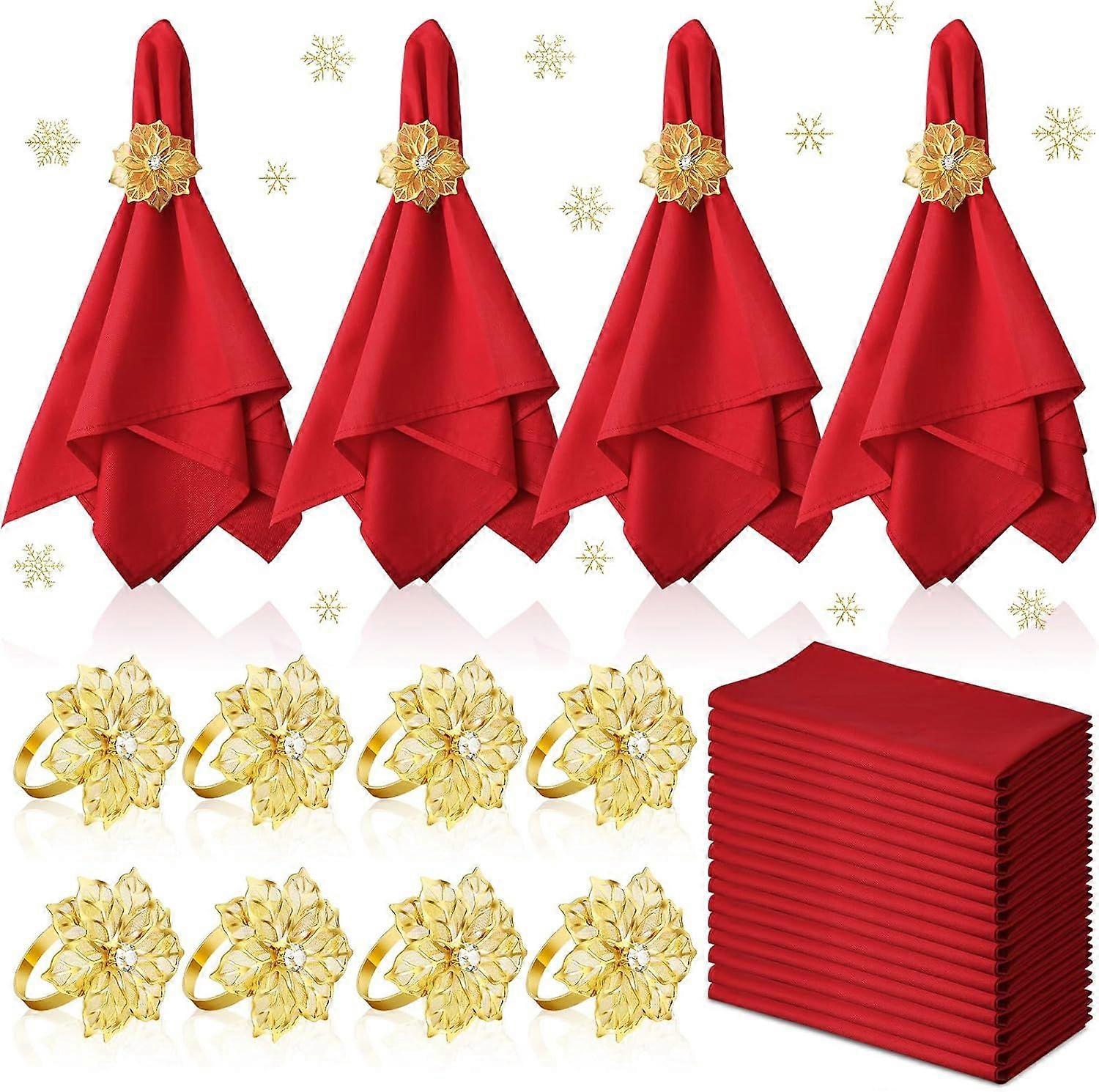 EternaNest 16 Pcs Napkins and Rings Set of 8 Winter Holiday Napkins Holder Cotton Fabric W
