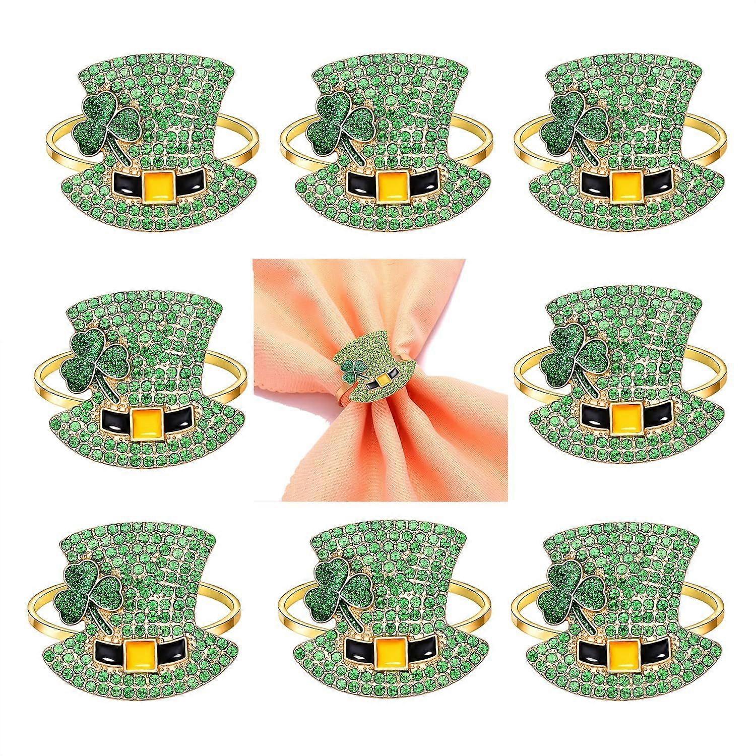 8Pcs St Patrick's Day Rhinestone Top Hat Metal Serviette Buckles Holder Crystal