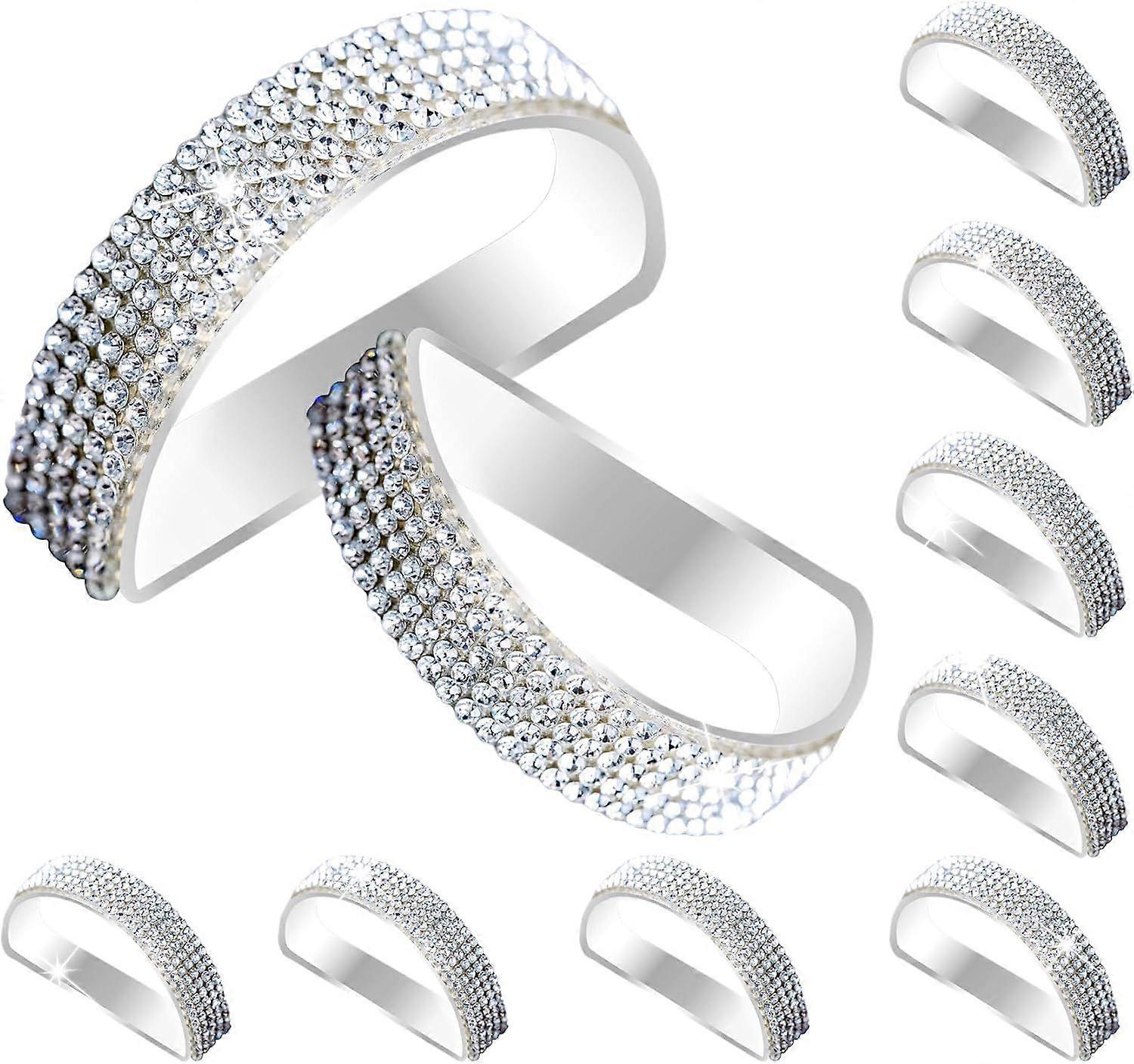 Silver Set of 12 with Bling Rhinestone,Stainless Steel Napkin Holder Modern Ring Serviett