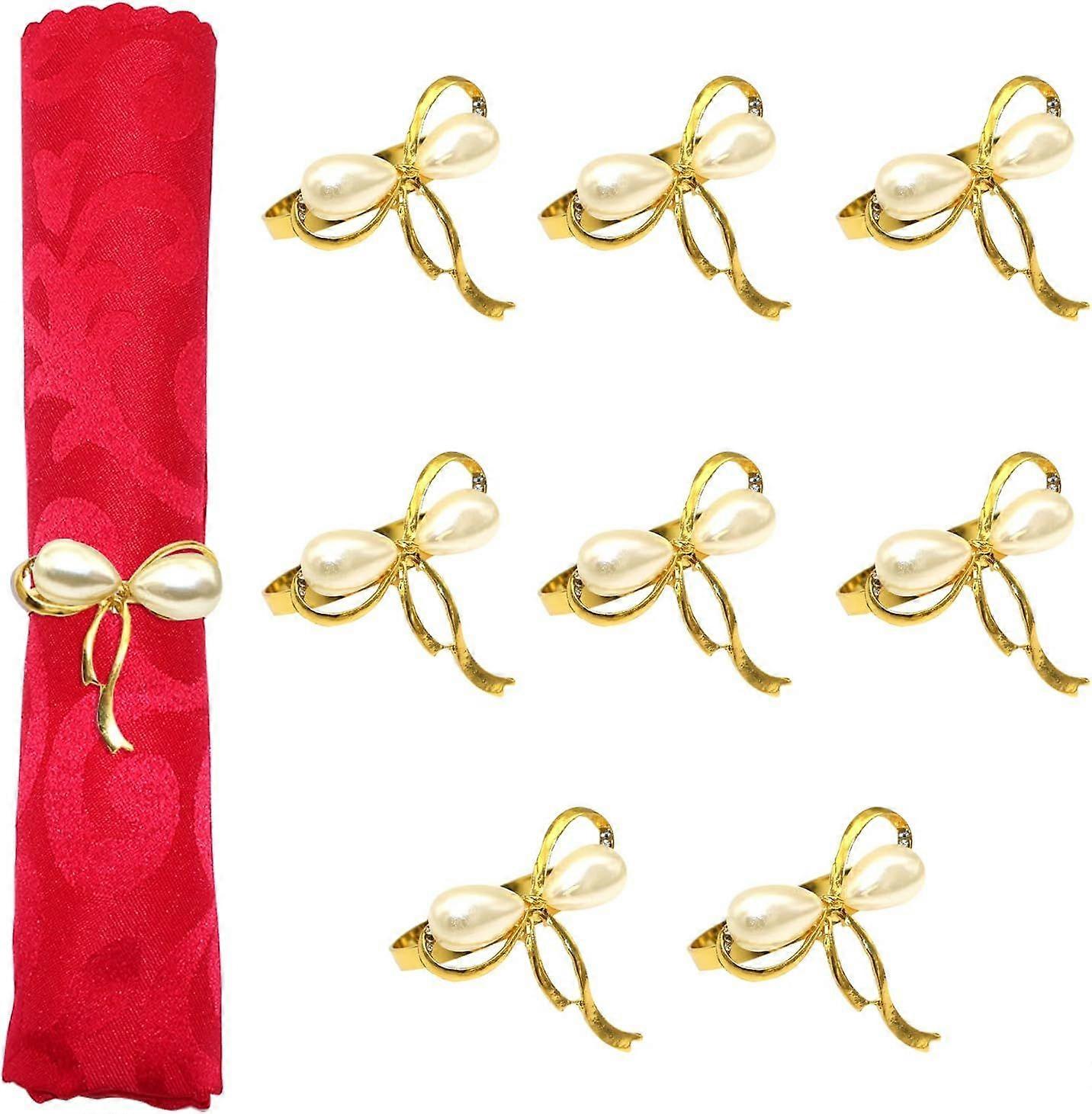 Set of 8 Bow Napkin Holder White Pearl Napkin Buckle for Wedding Dinner Holiday