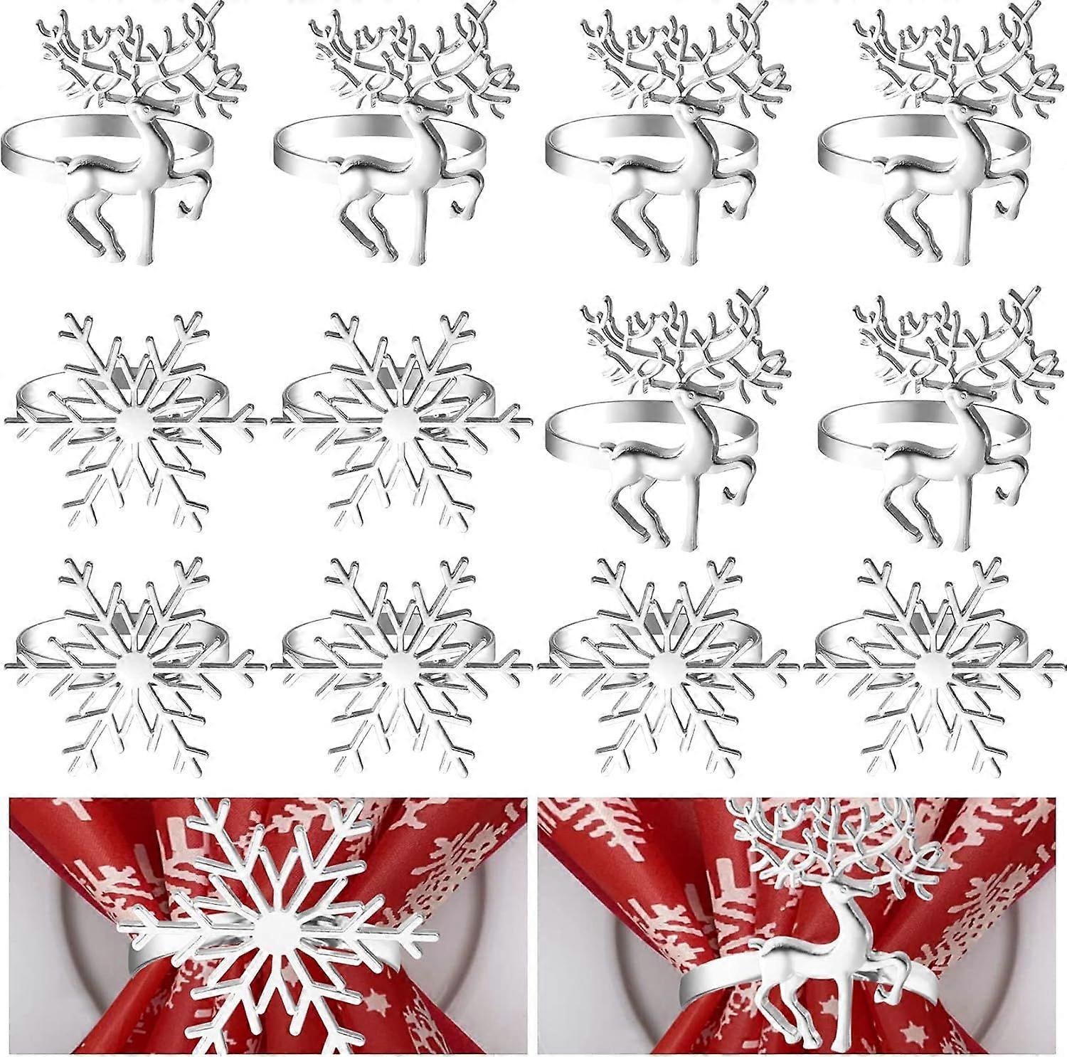 12Pcs Silver Christmas Holders,Deer Napkin Holders, Christmas Snowflake , Xmas