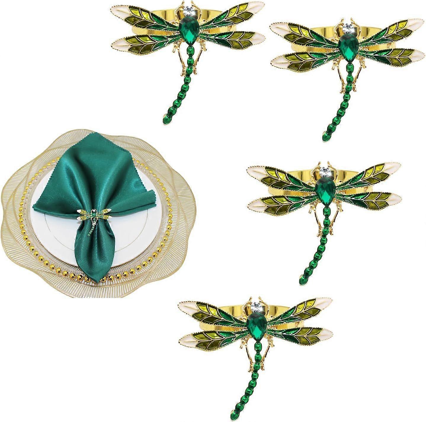 Dragonfly Set of 4,Green Dragonfly Napkin Holders Gold Metal Napkin Buckle Bulk