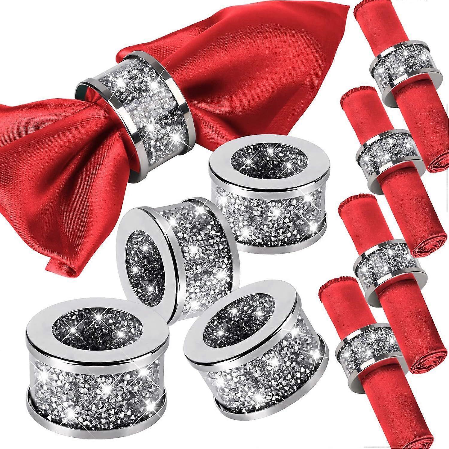 Cloth Napkins and Silver Set of 8 Washable, 17"x17" Stainless Steel Rhinestone