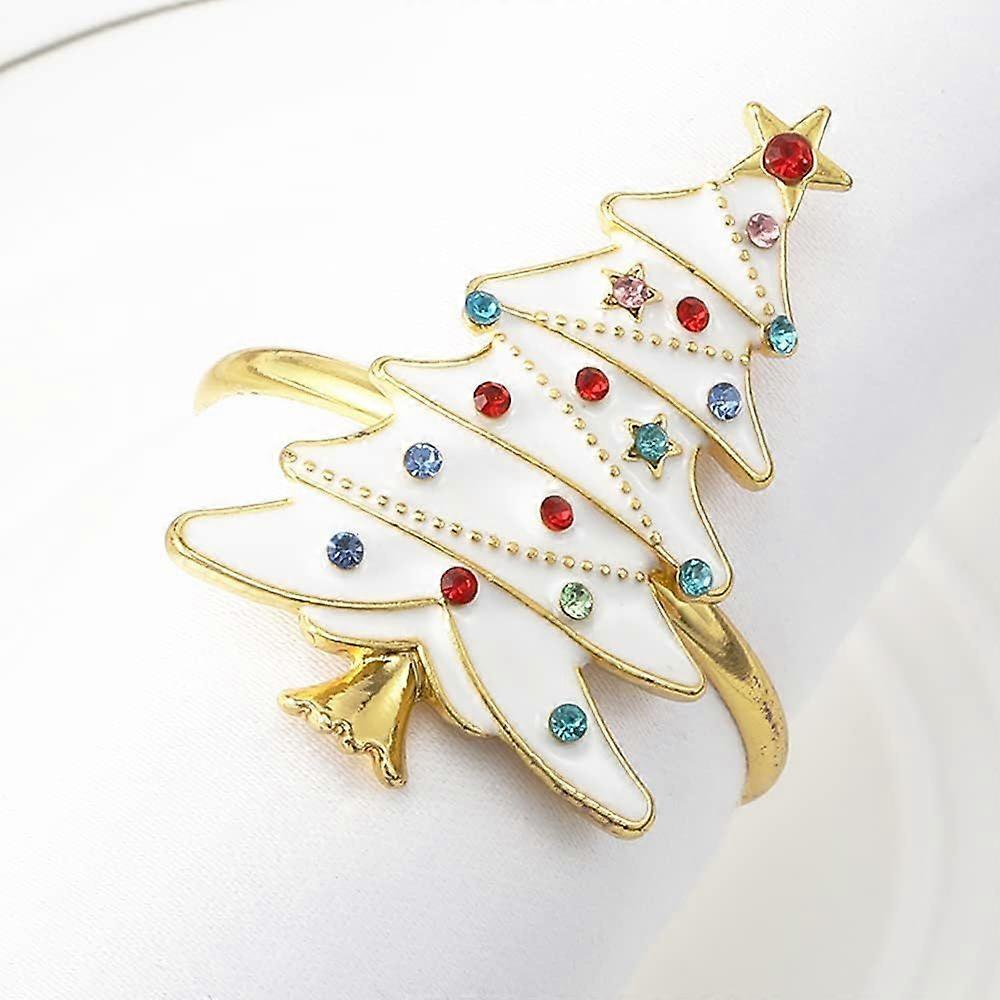 Christmas Set of 8, White Christmas Tree with Rhinestones, Gold for Holiday