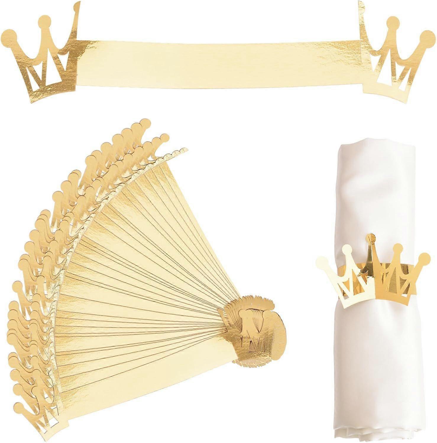 Gold Reflective Napkin Holder Rings, 50 Pcs Crown Paper Buckles Holder for