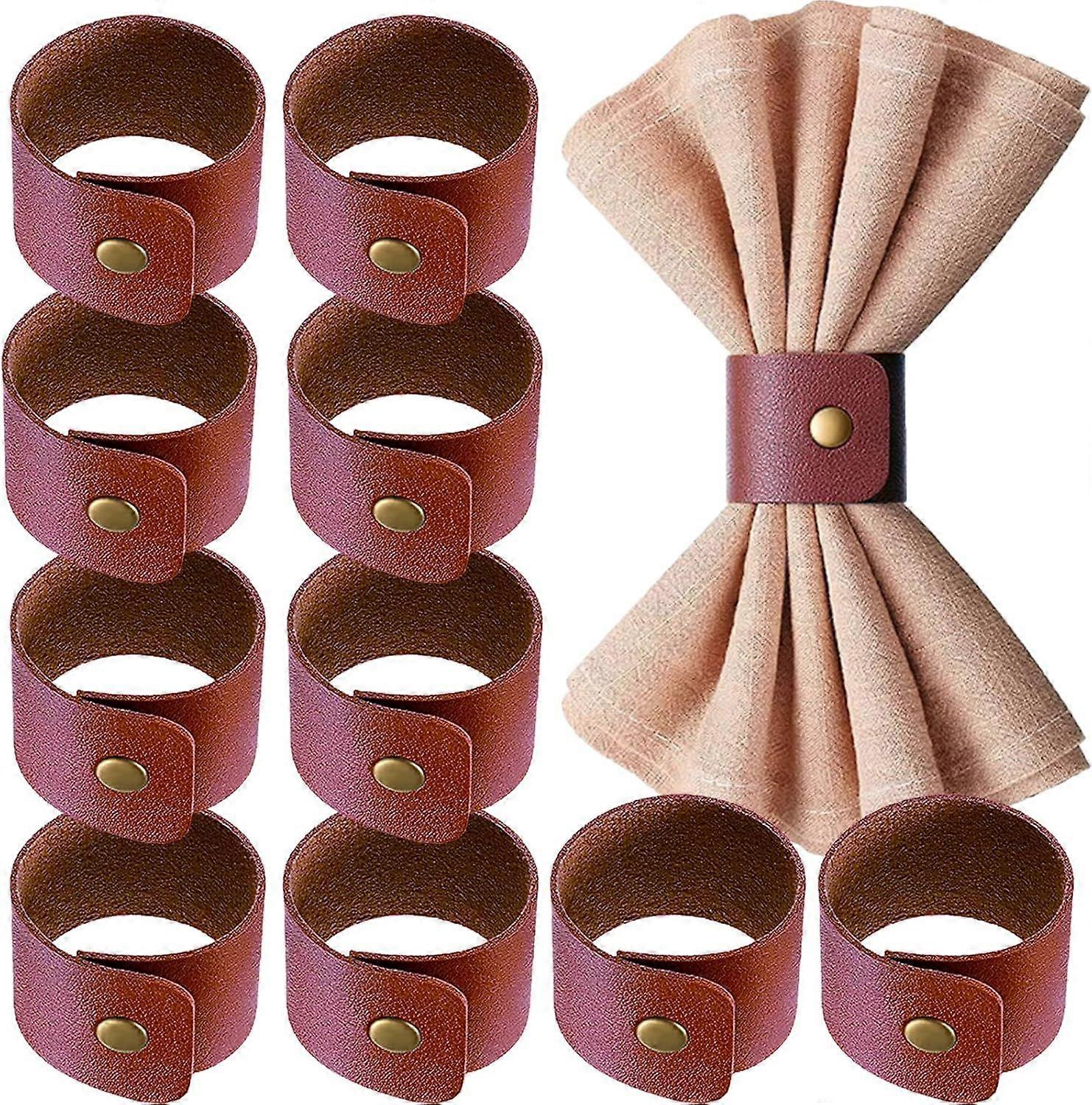 12 PCS Leather Rustic Napkin Buckle Vintage Wine-colored Napkin Ring Holder for