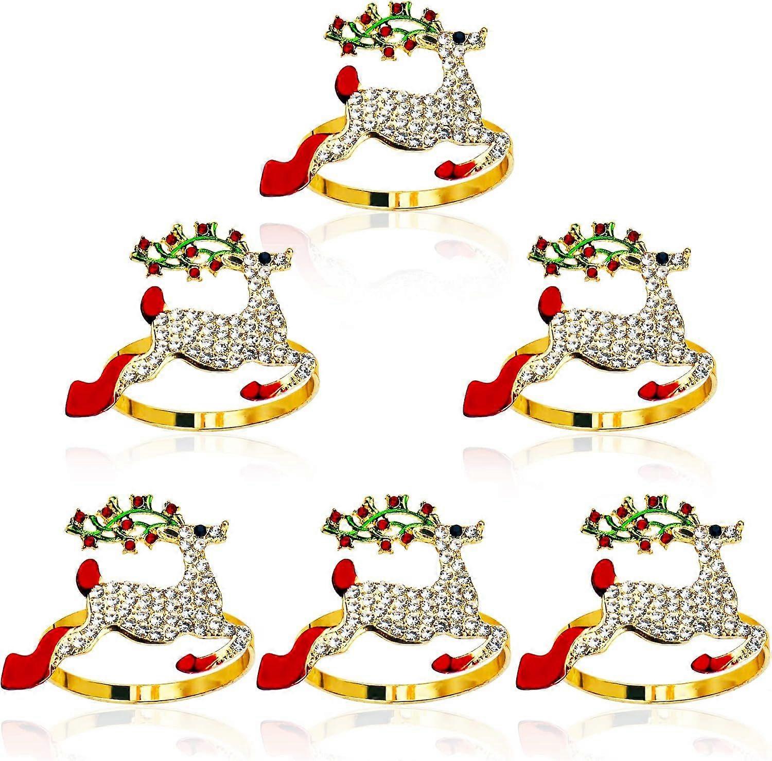 Christmas Napkin Ring Set of 6 Deer Holders Rhinestone Napkin Buckles for New