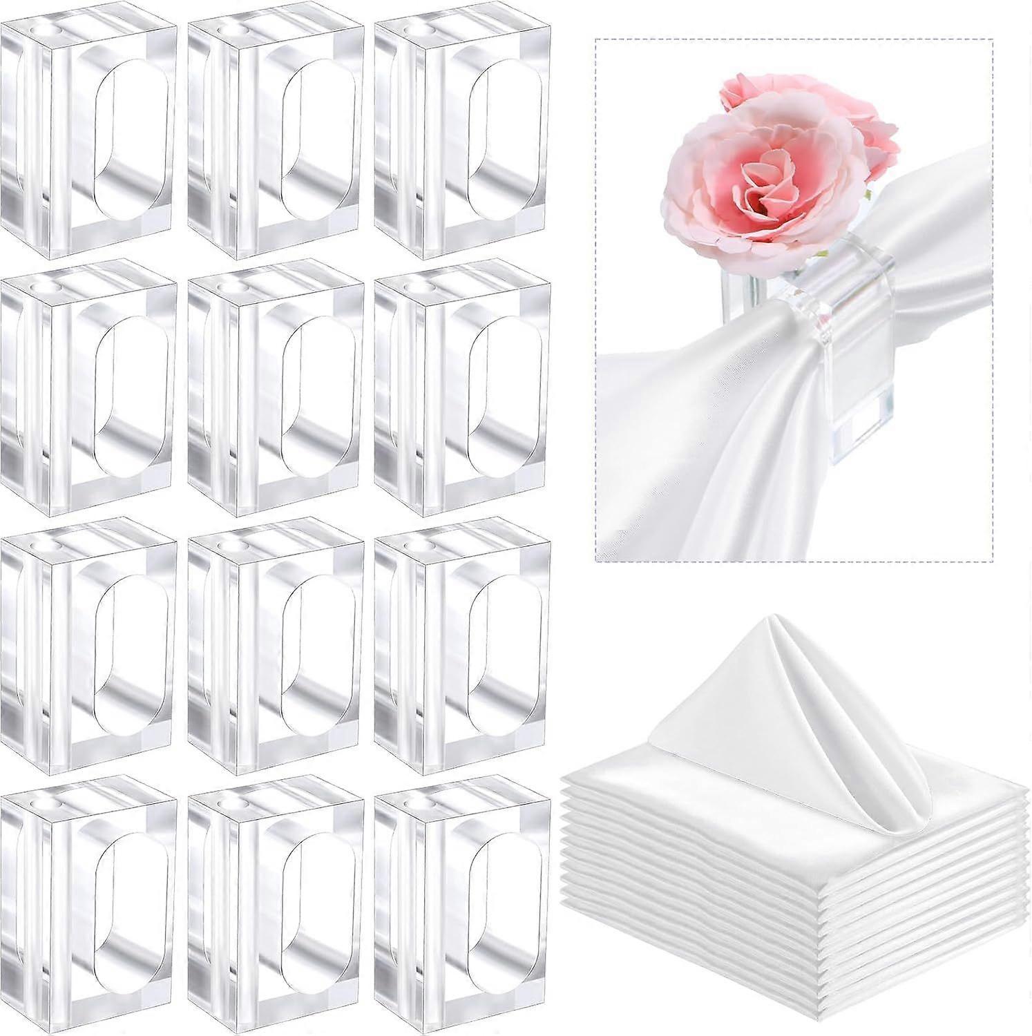 12 Set Clear Flower Acrylic and Cloth Napkins Set Bud Square Vase Holder 17 x 17 Inch