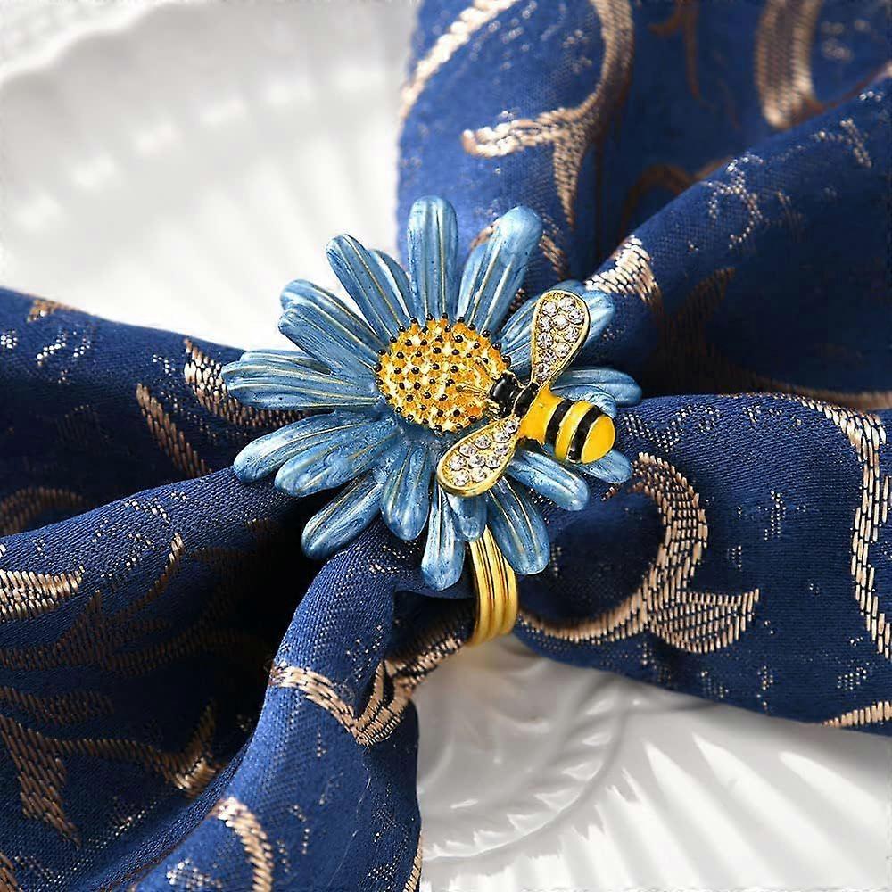 Daisy Sunflower Set of 6, Gold Bee Napkin Ring Holders for Birthday Decorations, Wedding,
