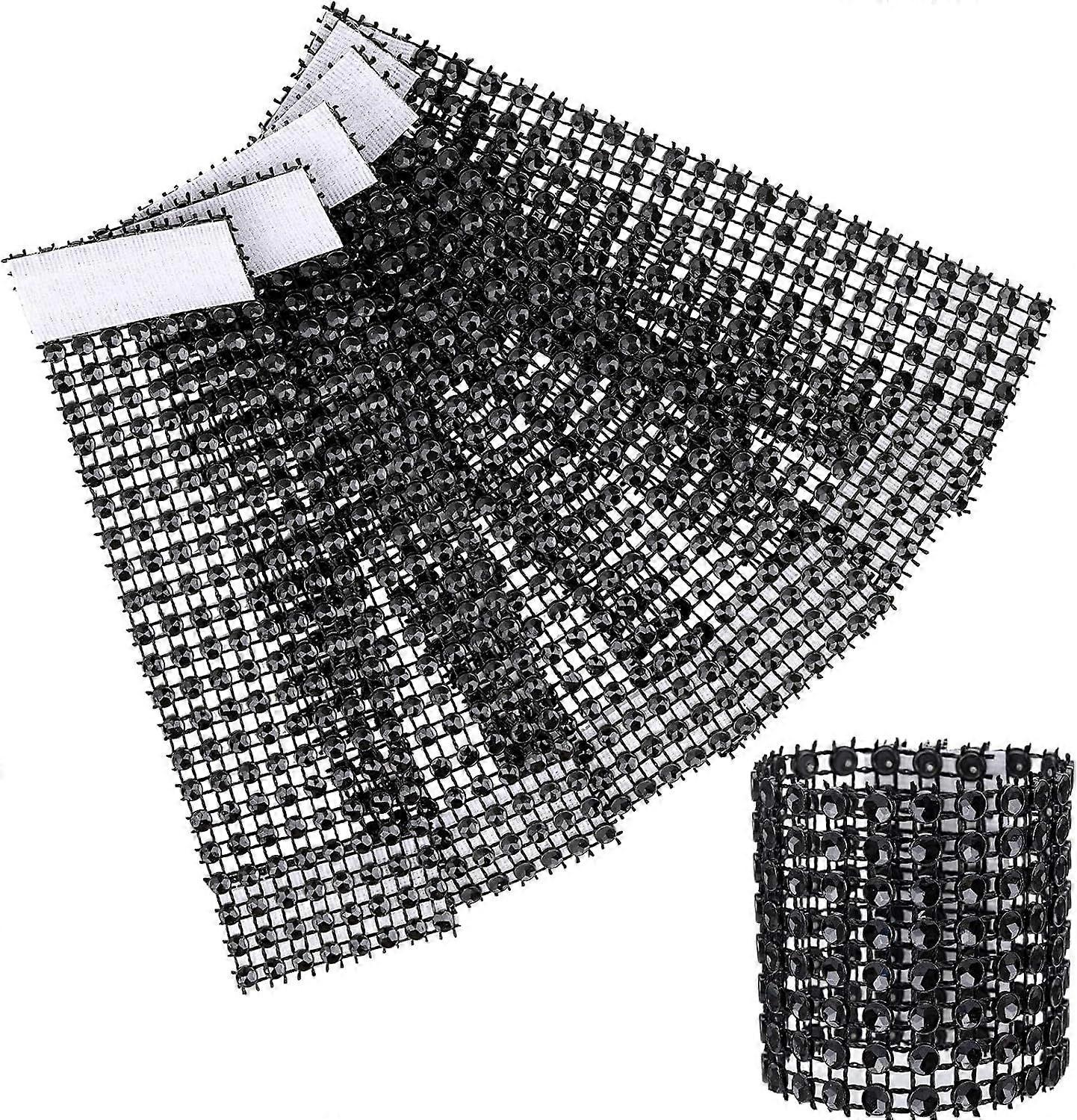 140Pack Black Diamond Rhinestone Napkin Ring Eight Rows Rhinestone Mesh Napkin