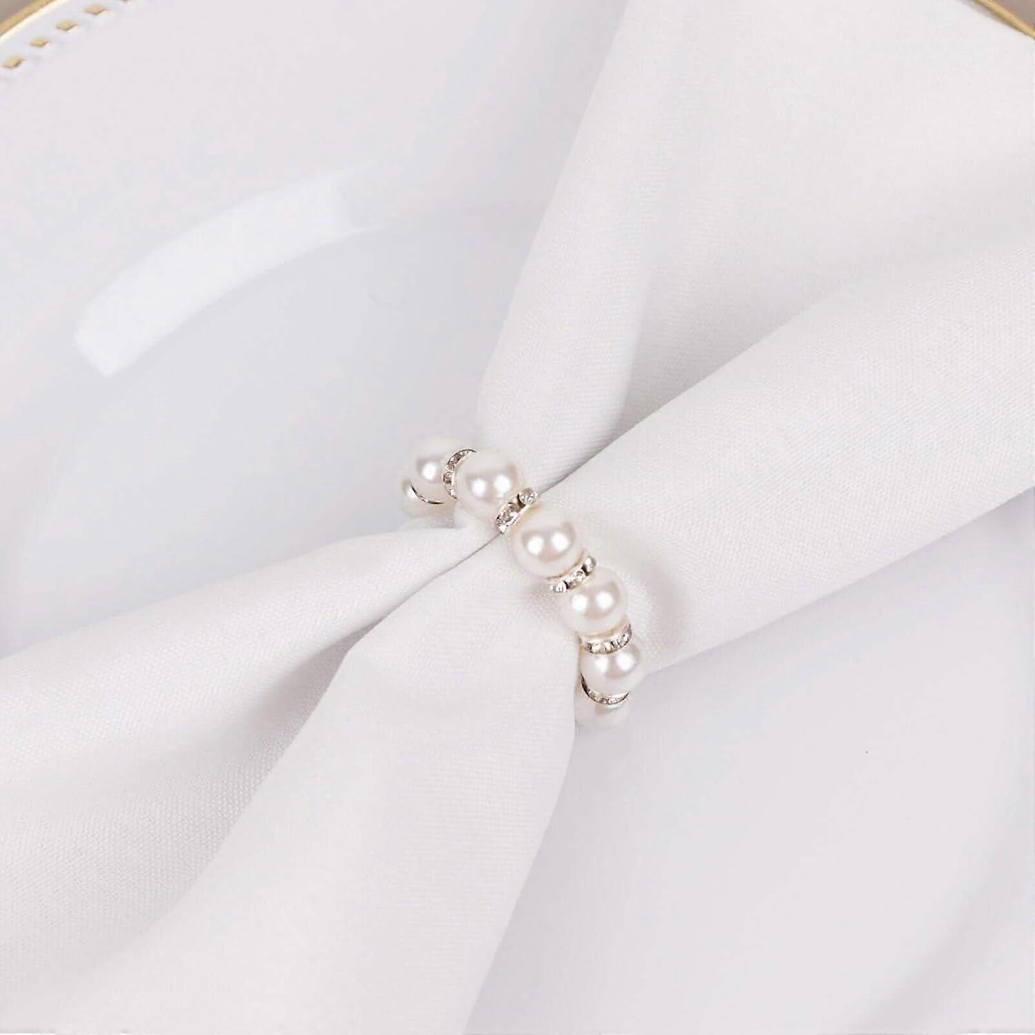 4 Pack | 1.5" White Pearl Beads and Silver Rhinestone , Elegant Round Serviette