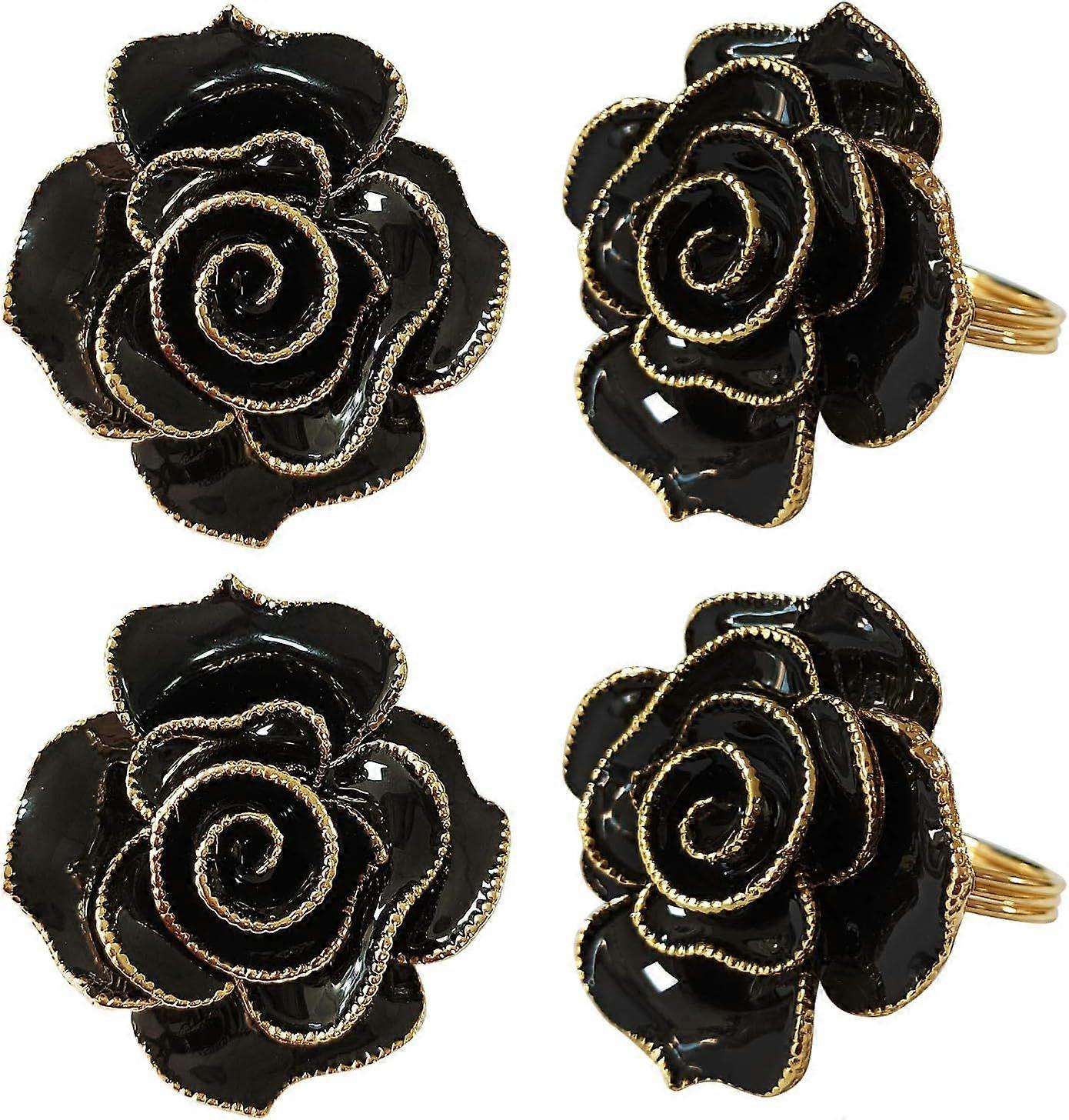 Black Set of 4,Flower Rose Napkin Holder Rings Buckles,Bloom Napkin Holders Set