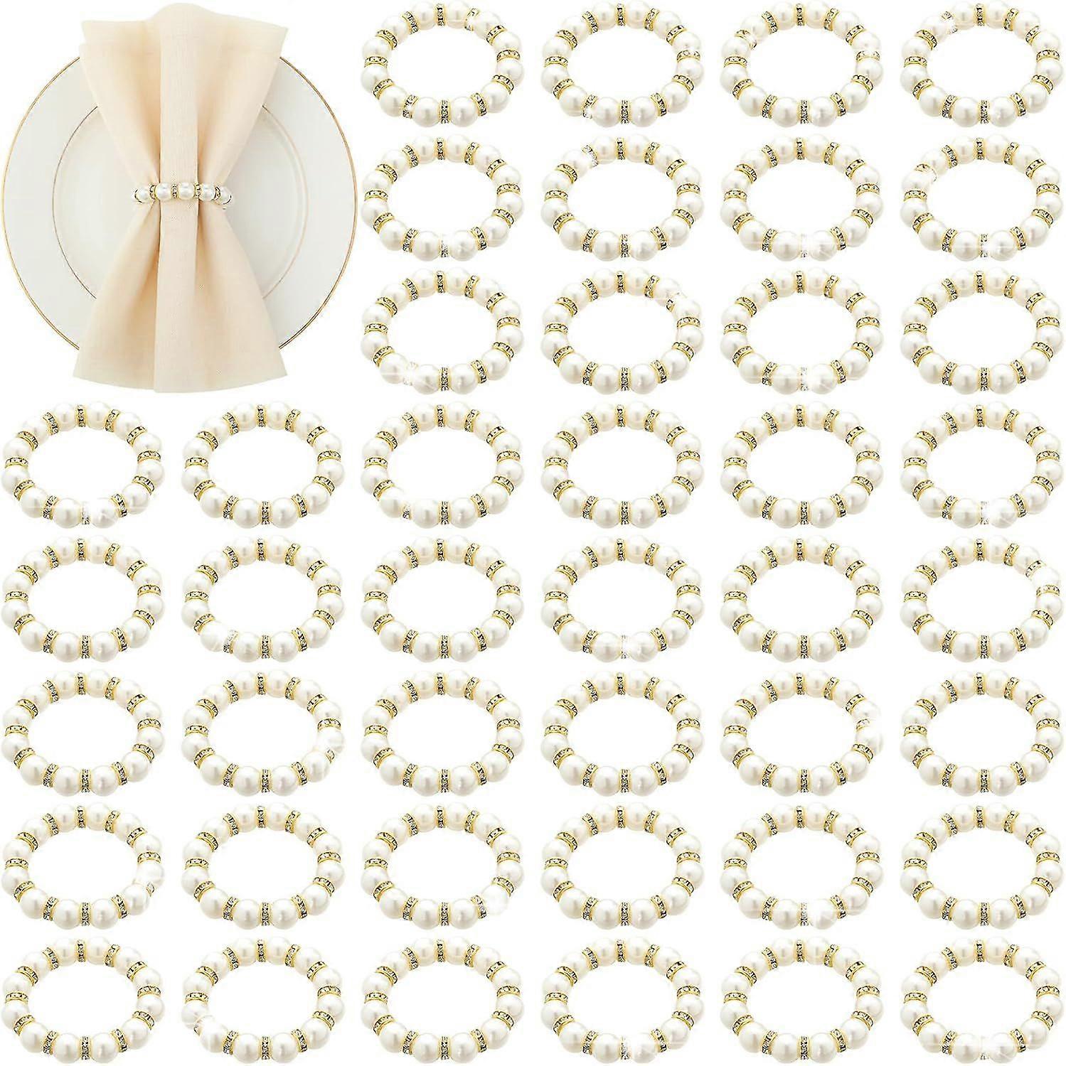 UrbanMingle 100 Pcs Pearl Imitation Beaded Napkin Ring Holder Elastic Stretched