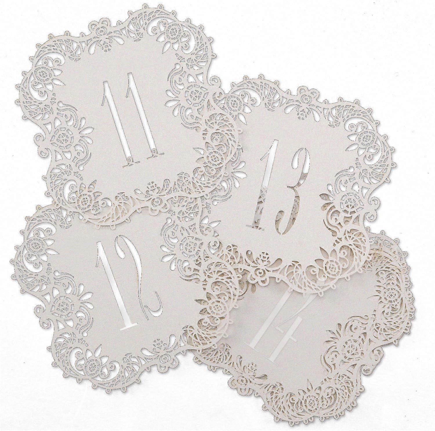 UrbanMingle Laser Cut Table Number Cards, Numbers 11 to 20, White Shimmer White