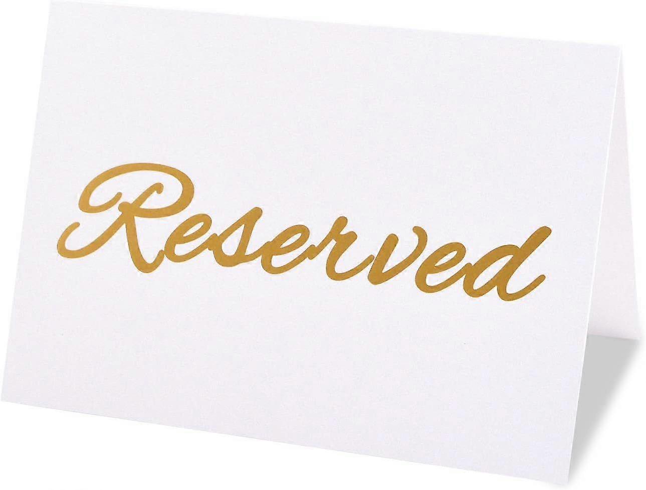 WIDELY APPLICATIONS: The Gold Reserved Table Sign is the perfect table sign for weddings, parties or restaurants. It will make your guests feel special and ensure they are seated at the front of the line.EASY TO USE: The double-sided reserved table cards are easy to fold, allowing you to set up each card in seconds. The tent-style design stays vertical and won't collapse easily.PACKAGE INCLUDE: The set of cards including 25 reserved cards, each seat card measures about 4.13"/10.5cm*5.9"/15cm.PREMIUM MATERIAL: The material of the cardboard is high-grade pearl paper, the surface has a slightly shiny pearlescent texture, non-toxic and tasteless, safe and environmentally friendly, durable and not easy to wear.ELEGANT DESIGN: The front and back of the card are printed with gold foil lettering, giving it a modern and elegant look with a simple and classy style that will fit into any dcor you choose.