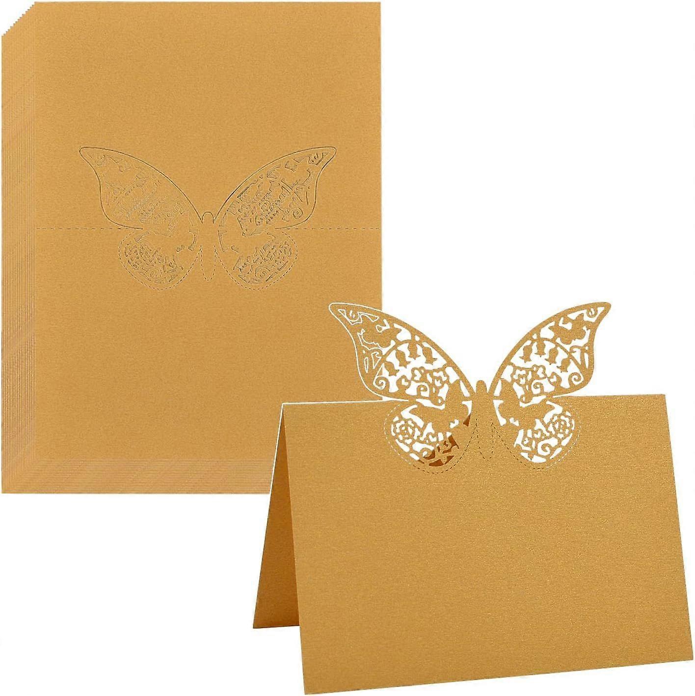 UrbanMingle 3D-Butterfly Place Cards, 50 Pcs Gold Name Place Cards Laser Cut