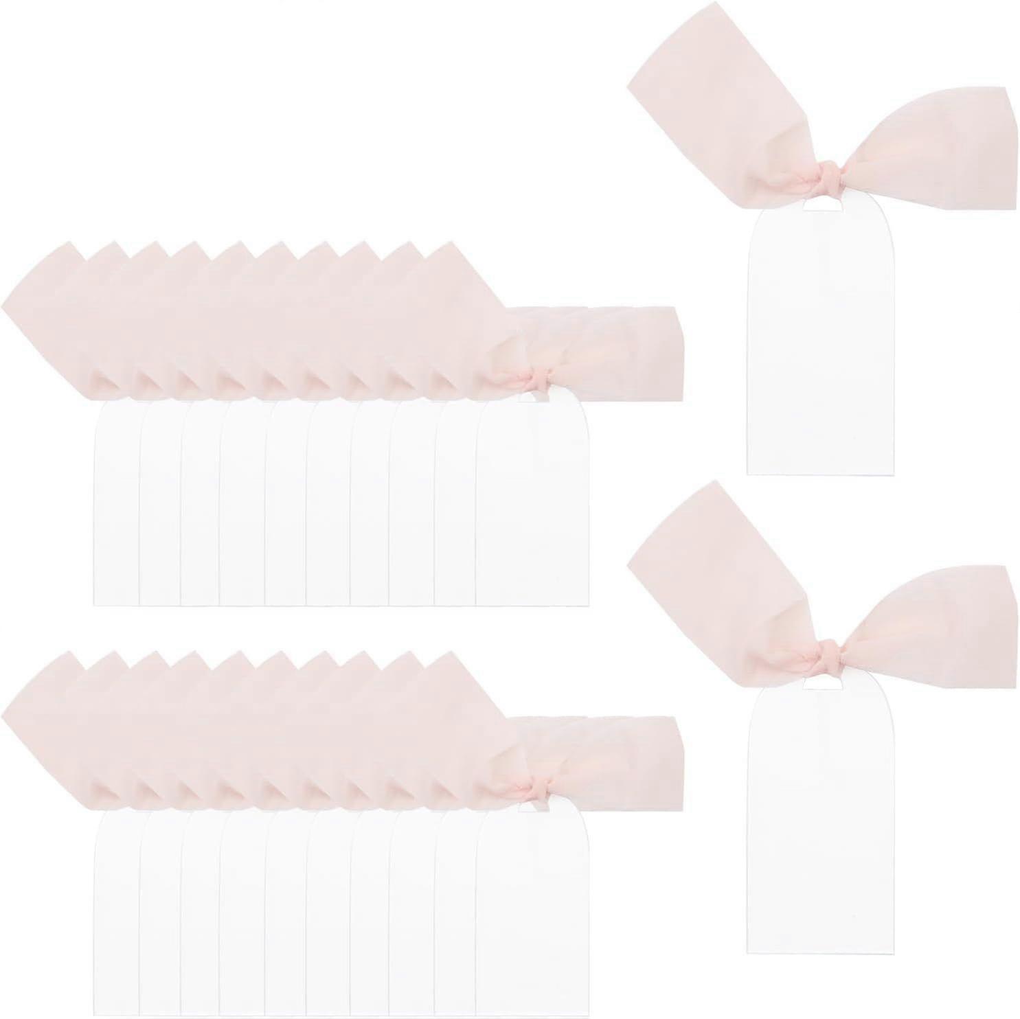 Premium quality: Made of Acrylic, the frosted acrylic name card is not only sturdy and transparent, but also has an elegant arched appearance that can be decorated in various stylesPackage: You will receive 20pcs blank acrylic name cards with pink ribbon, suitable for weddings, parties, meetings, or restaurant seat receptionEasy to use: Simply peel off the protective film on the surface of the acrylic place cards for reception, and it's easy to clean and reuseDIY Name Cards: Acrylic blank name cards can be written with a marker pen to write beautiful handwriting, or you could use a small brush to draw your favorite shape, or paste cute stickersSize: Each arched Acrylic place card measures 90x45mm/ 3.5x1.8inch. Color: Clear