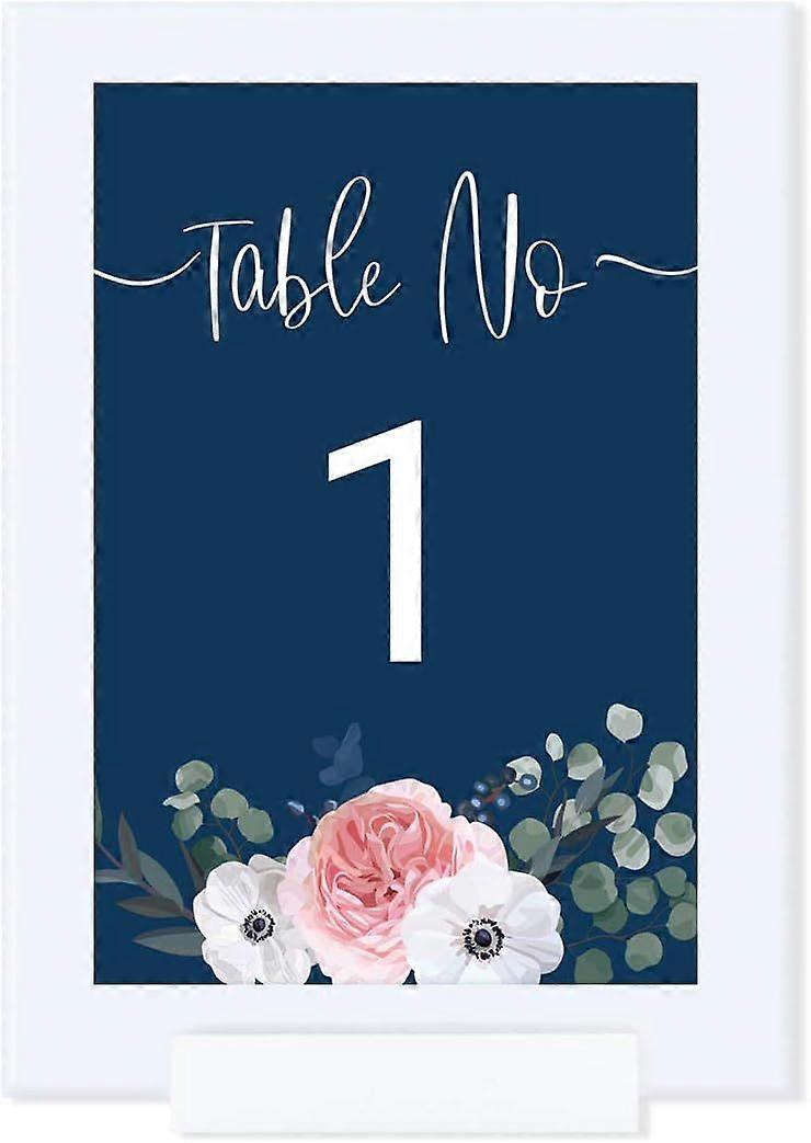 UrbanMingle Winter Navy Blue with Eucalyptus Blossoms Wedding Table Numbers 1-20, 4x6-Inch